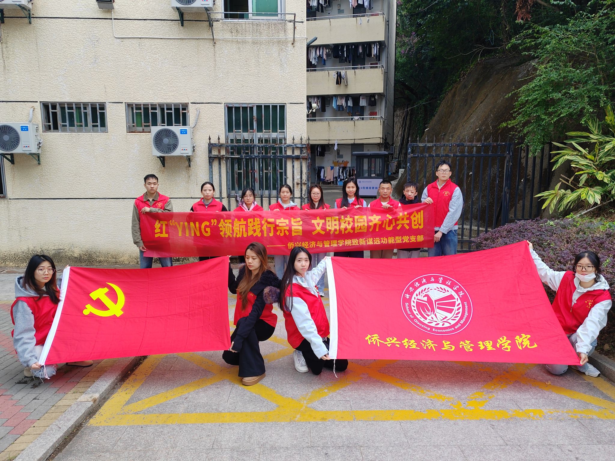 11月19日,我院“致新谋远”功能型党支部以“红‘YING’领航践行宗旨·文明校园齐心共创”为主题,组织党员、入党积极分子开展文明校园创建志愿服务活动。