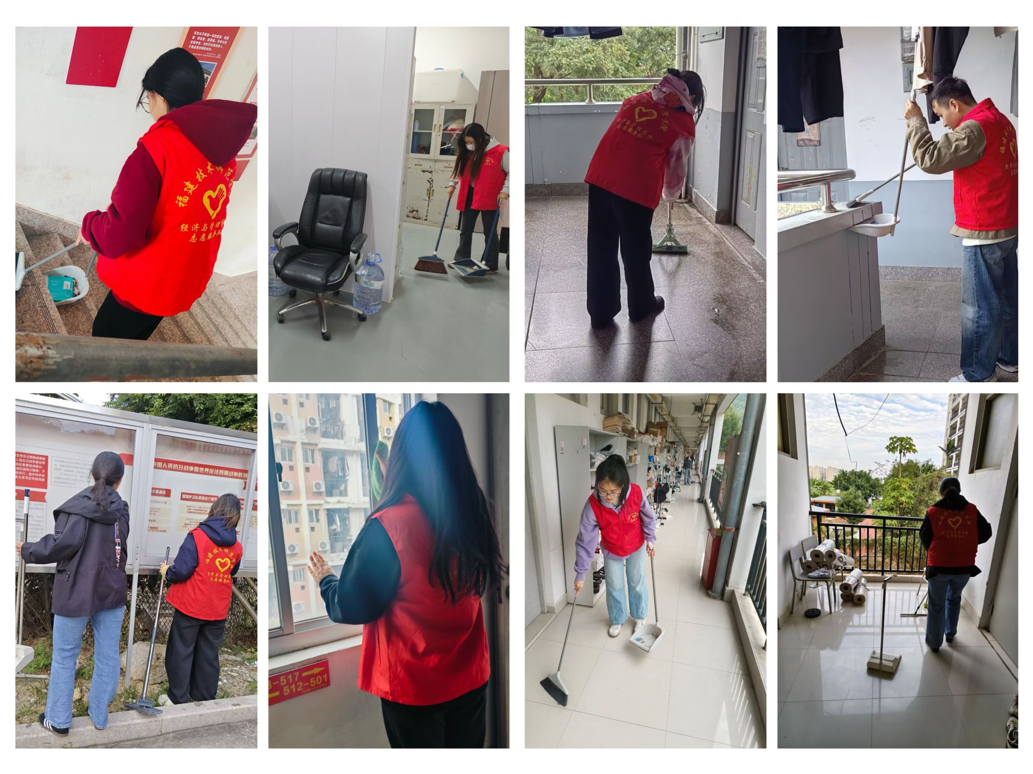 同学们在向高园、24号楼学院宿舍区、兴安楼学院行政办公室等公共区域部分开展卫生清扫,以实际行动践行全心全意为师生服务的宗旨,努力优化社区环境,助力文明校园创建。