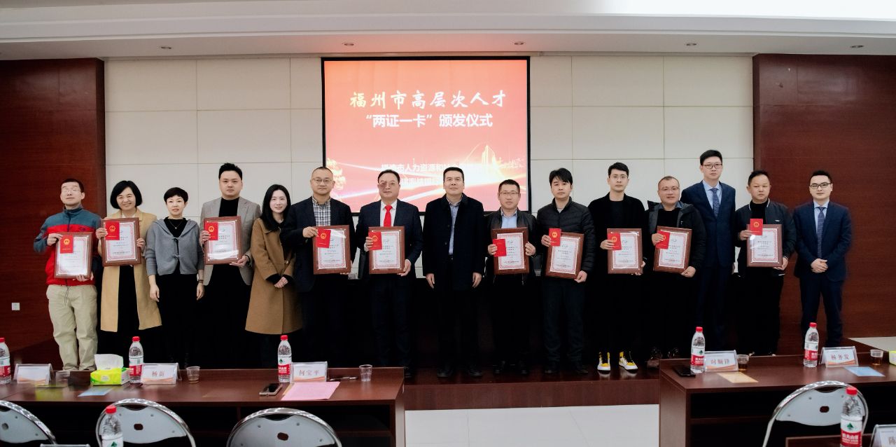 1月12日上午,福清市人力资源和社会保障局与福建海峡银行福清分行联合举行了福州市高层次人才“两证一卡”颁发仪式,来自重点龙头企业、高校、国企、教育卫健系统、机关事业单位的近60名福州市高层次人才参加了此次活动。