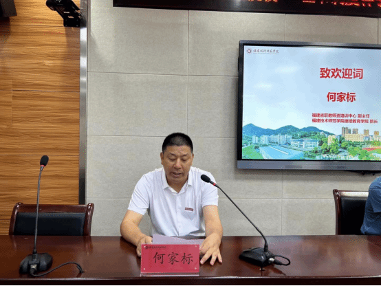 何家标院长首先致欢迎词。他对全体参训学员表示欢迎,并提出三点要求:希望学员们提高认识、把握数字经济发展机遇;转变角色,提升职业素养及网店运营的理论及实战水平;以此次培训为契机,发挥网店运营专业优势,助力乡村振兴。杨建辉院长介绍了我院的专业群优势和此次研修班的前期准备和培训安排。希望能将培训班打造成一支能够满足专业教学与 1+X 证书培训需求相融合的(网店运营)教学创新团队,加强1+X职业技能等级证书与专业课“岗课证赛融合”,深化“三教”改革。希望各位学员们能踔厉奋发、笃行不怠,能在此次培训中学有所成、学有所获。福建工贸学校的陈淑珍老师作为学员代表发言,表示将珍惜培训机会、端正学习态度,不断更新知识和技能,提升网店运营职业技能。