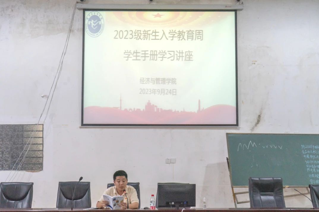 蔡沄舟学长以更好保障同学们大学生活顺利进行为初心,向新生强调了学习《学生手册》的重要性。重点梳理了《学生手册》中学籍管理、奖助学金评定、学生的学习生活等方面的规定,并着重强调了学校的规章制度和纪律要求。此次《学生手册》学习活动的成功开展,充分展现了经管学院对新生日常教育管理工作的重视,是新生教育管理的重要一环。希望我院新生严格遵守学校规章制度,树立正确的世界观、人生观、价值观,争做有理想,有信念,有担当的新青年。