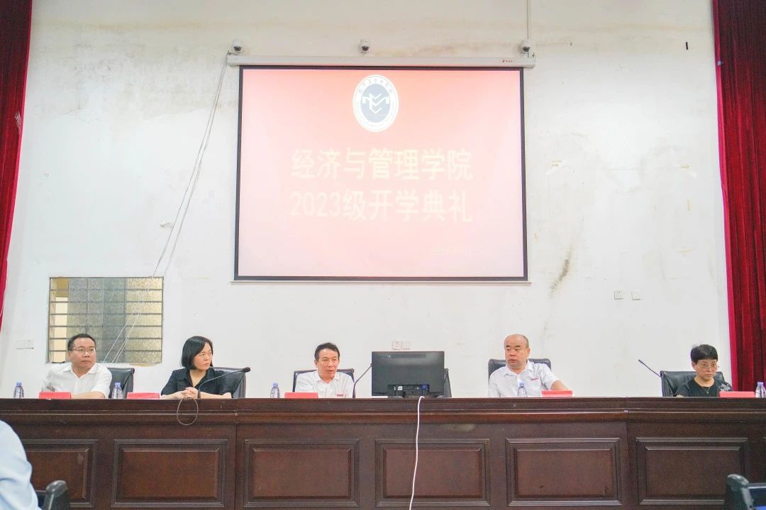 金秋送爽喜迎八方学子,丹桂飘香开启美好明天。2023年9月25日上午9点,经济与管理学院2023级新生开学典礼在向高园报告厅(一)隆重举行。学院党政领导、办公室主任、各专业主任、分工会主席、全体辅导员、新生助导与2023级全体新生参与本次活动。本次开学典礼由2022级辅导员陈婉璇老师主持。