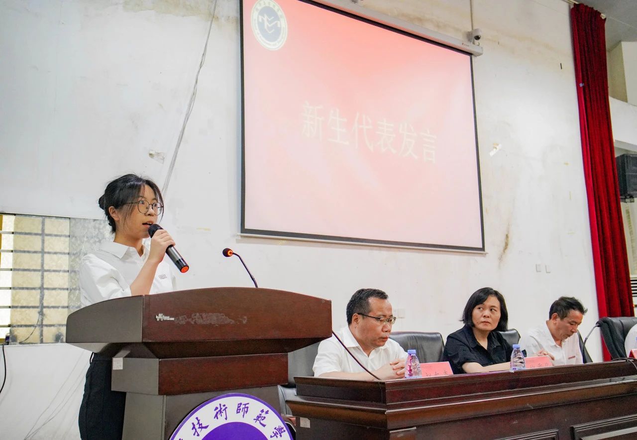 2023级的林函冰同学代表全体新生表达了成为学院一份子的喜悦。她心怀对未来生活的憧憬,言语之间描绘出大学的蓝图,立志开启一个有质量的大学生活。
