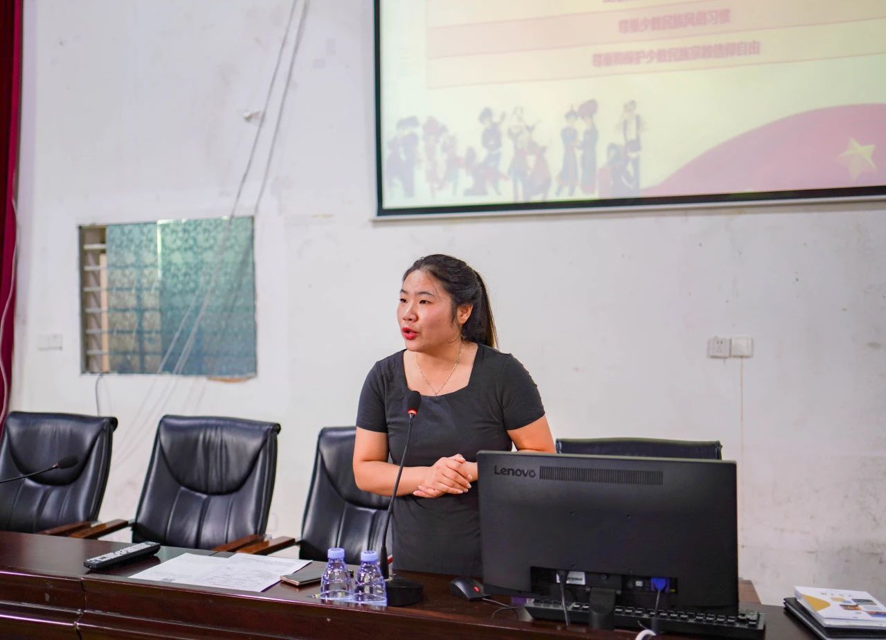 9月27日上午,2023级专升本辅导员王亚苹老师在向高园报告厅(一)为2023级新生开展了民族宗教法规方面的讲座。她主要从我国的民族政策、宗教政策、铸牢中华民族共同体意识三个方面讲述。王老师强调,我们新时代的大学生要时刻保持清醒的头脑,提高自身的科学文化素养,树立正确的价值观,知法懂法,抵制校园宗教传播。各民族同学要坚持民族平等团结,彼此相互理解和尊重,铸牢中华民族共同体意识,促进各民族交往交流交融。