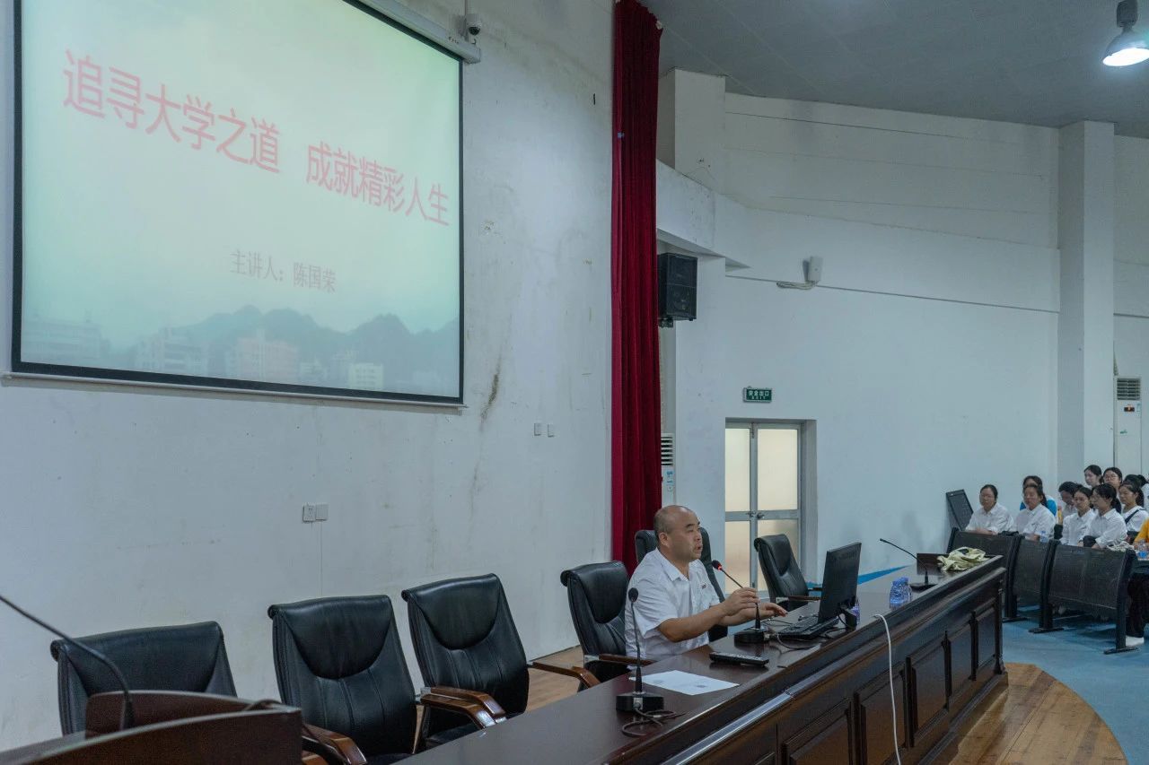 2023年9月26日下午,经济与管理学院党委副书记(主持工作)陈国荣教授在向高园报告厅(一)为2023级新生开展了题为《追寻大学之道 成就精彩人生》的专题讲座。陈教授主要从什么是大学、为什么要读大学、如何读大学三个方面详细阐述,让新生明白了大学之道以及如何在大学中成就精彩人生。