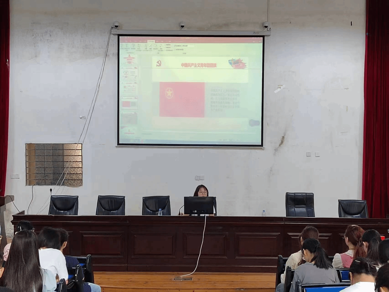 陈婉璇老师分别从入团申请、积极分子的教育培养和考察、团员发展三个方面对入团流程展开详细介绍,勉励同学们提高思想觉悟,明确目标,以实际行动积极向团组织靠拢。同时,陈婉璇老师介绍了什么是中国共青团,带领新生认识团徽、团旗、团歌,强调要牢记入团誓词。