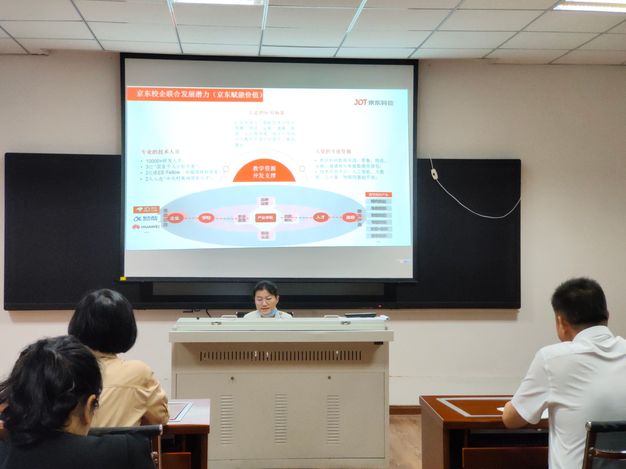 6月12日,京东教育研究院(福建)教育生态总经理吴庸和项目经理周萍莅临我院,与我院副院长(主持工作)魏秀华教授、赵东喜副院长以及金融专业主任郑云峰老师进行了深入的交流。国际经济与贸易、市场营销专业专任教师参加了会谈。双方就共建京东数字商务产业学院展开热烈讨论,旨在将企业资源引进校园,推动校企信息共享,共同擘画产教融合的蓝图。