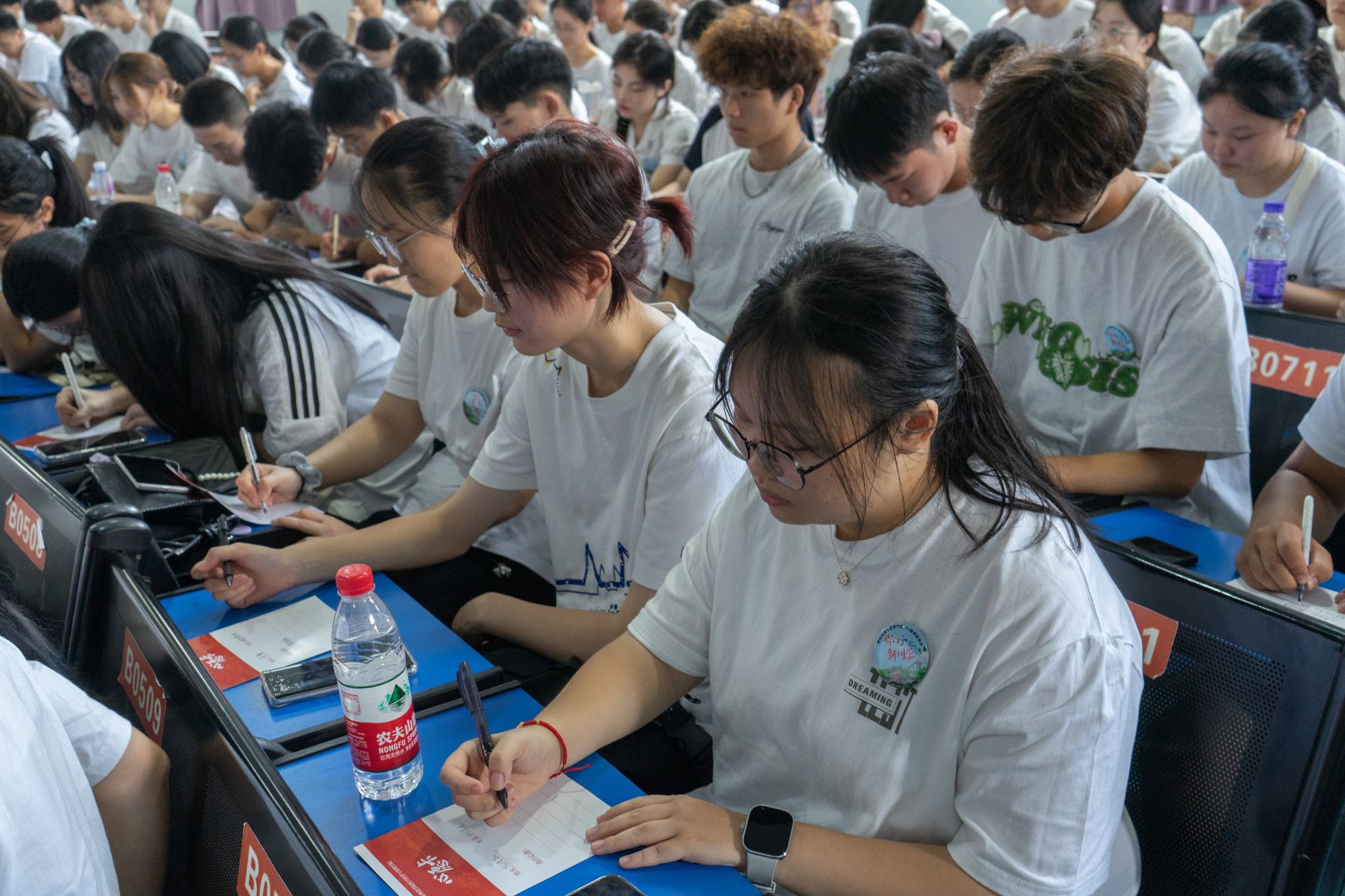在开学典礼之前,学院高年级同学献唱《大学问》,为2024级新同学送上学长学姐的温馨祝福。