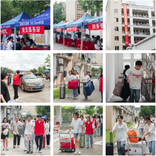 学院高年级迎新志愿者、党员服务队,积极践行志愿服务精神,以“心”迎新、用爱贴心,为新生办理登记手续、发放报到材料,搬运行李物品,用汗水赢得新同学、家长的认可。