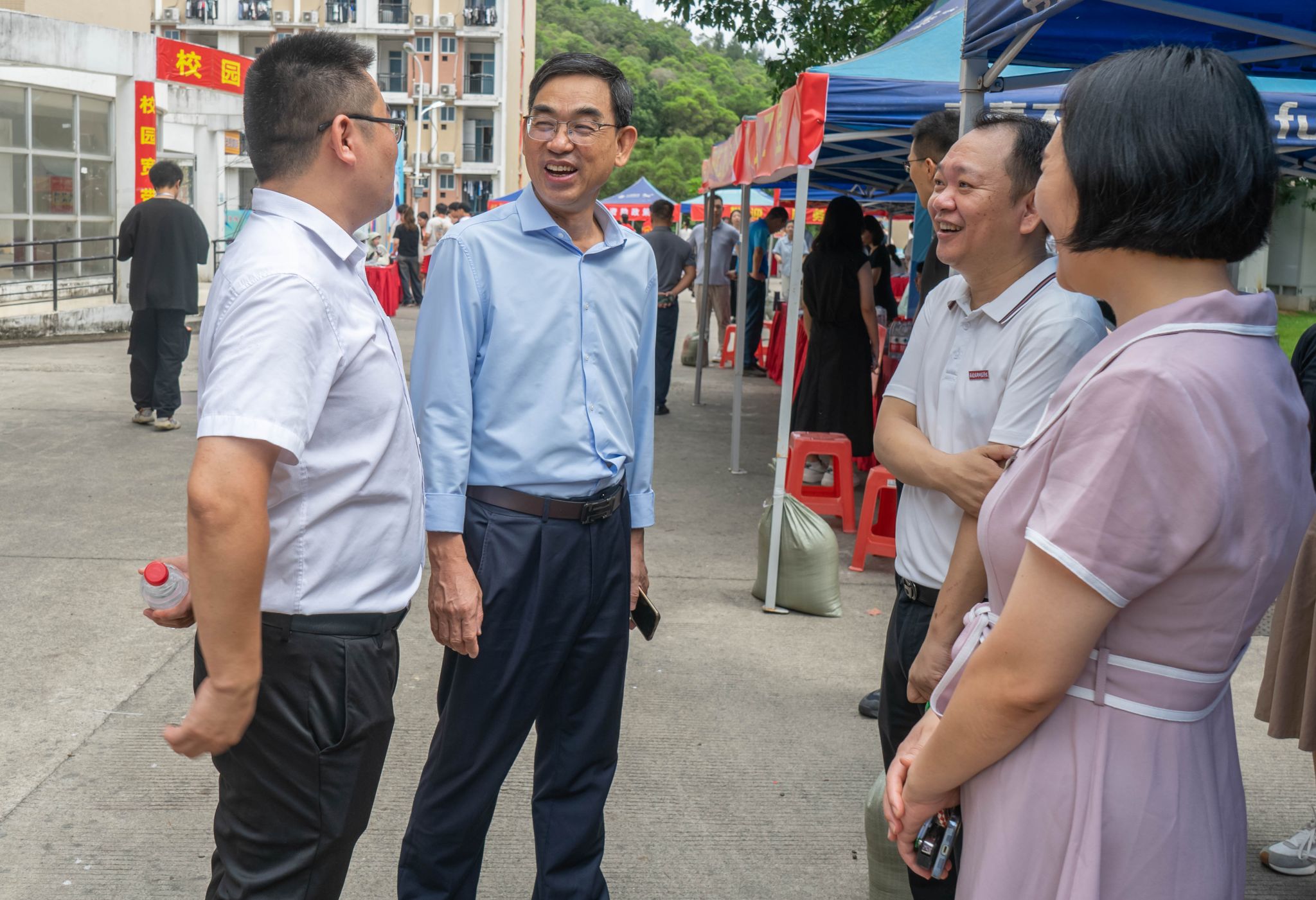 校党委书记赖海榕,党委副书记林海峰,校党委委员、副校长商光美、姜兴山等校领导及相关职能部门莅临学院迎新现场,详细了解前期迎新准备、新生入学报到情况,亲切慰问了在迎新一线工作的全体人员,对志愿者饱满的精神状态和热情周到的服务表示充分肯定。校党委书记赖海榕寄语我院2024级青年学子,要好好学习专业知识,积蓄力量,为实现中华民族伟大复兴挺膺担当!