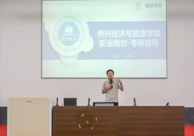 最后,学院邀请到聚创考研江老师从考研最新形势、经管类考研概况、省内外专业院校选择、各科目各阶段备考规划等方面进行了深入分析,作了一次干货满满的公益讲座。在互动问答环节,针对同学们提出的跨考专业选择、复习资料、备考技巧等问题,江老师还耐心进行了解答,为意向考研的同学提供了助力。