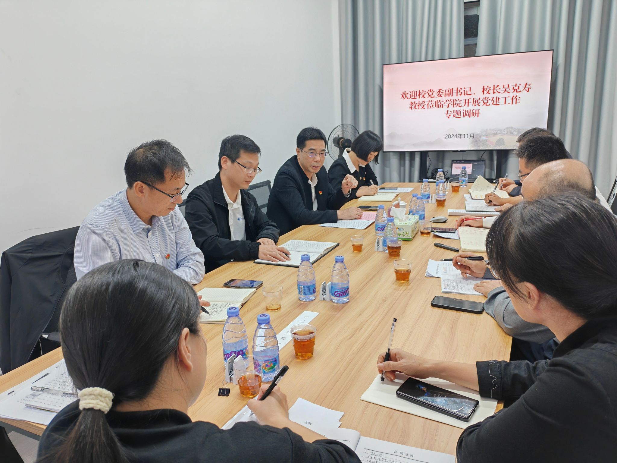 11月11日下午,校党委副书记、校长吴克寿莅临学院指导检查党建工作。学院党委副书记(主持工作)林伟、学院副院长(主持工作)魏秀华、学院副书记肖曦、副院长赵东喜以及党委组织员参加了会议。