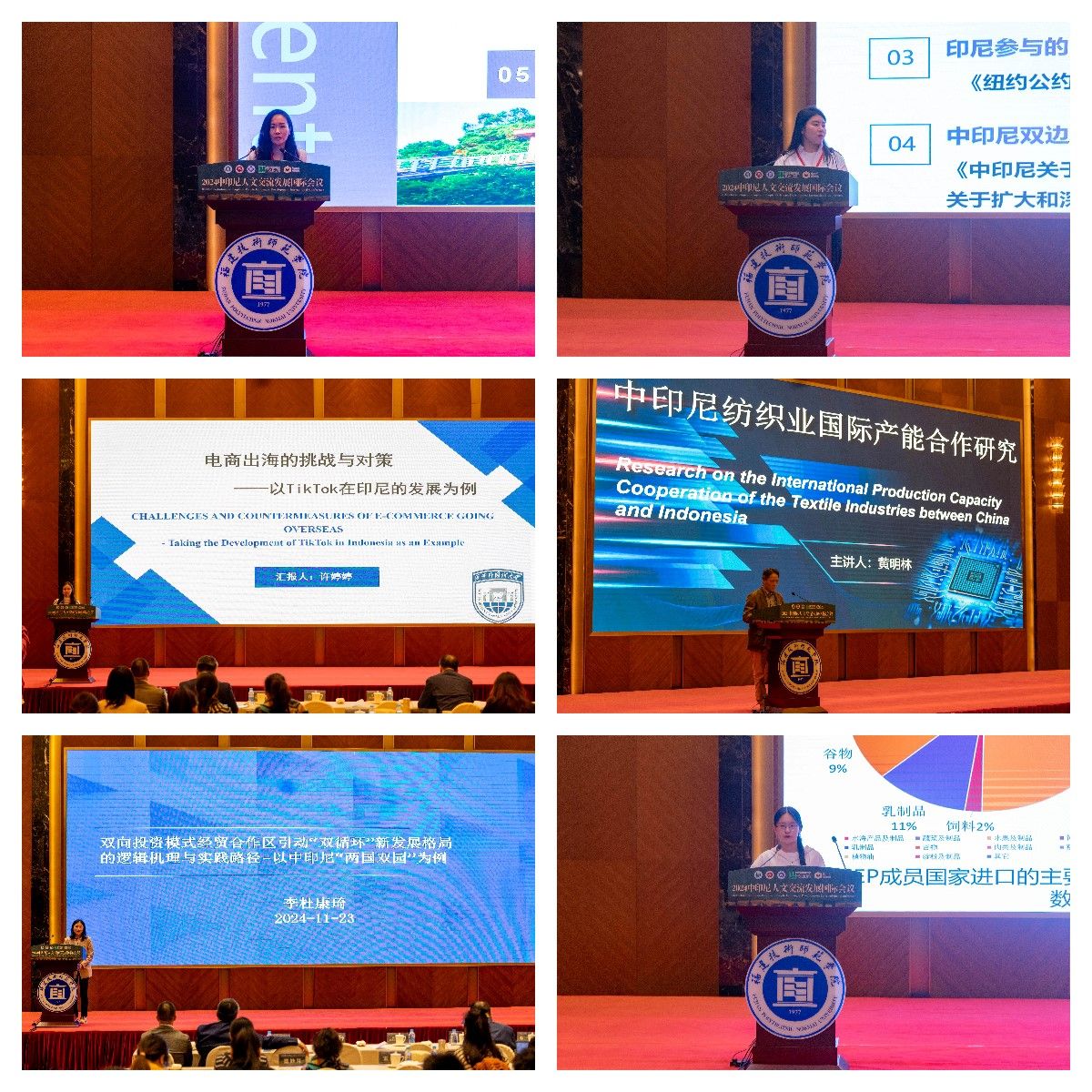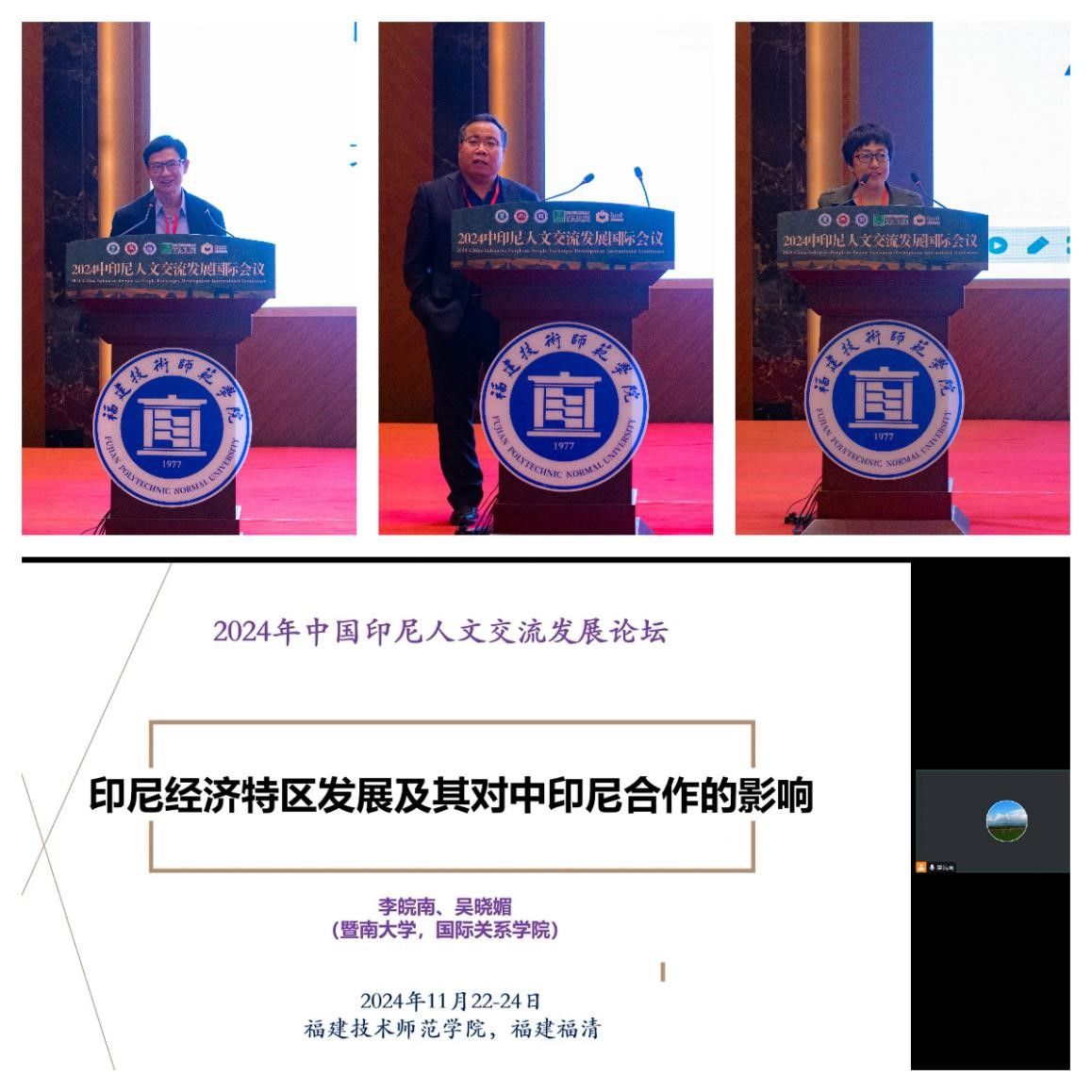 据悉,本次国际会议是中印尼两国交往中第一场由两国高校、中印尼“两国双园”园区、行业企业共同参与、共同推进的,具有鲜明产教融合特征的人文交流活动。我院作为校内主承办学院全程参与本次国际会议各项筹备工作,学院副院长(主持工作)魏秀华教授主持了主题报告、圆桌论坛环节。厦门大学国际关系学院/南洋研究院原副院长王勤教授、我院行政负责人郑云峰副教授分别主持了论文报告第一、第二阶段。福清市总商会会长、福建博尔泰能源科技有限公司董事长韩健, 福清市人民法院副院长魏昀,宁德师范学院经济管理学院副院长(主持工作)周俪等业界和学界代表参加了分论坛三相关活动。