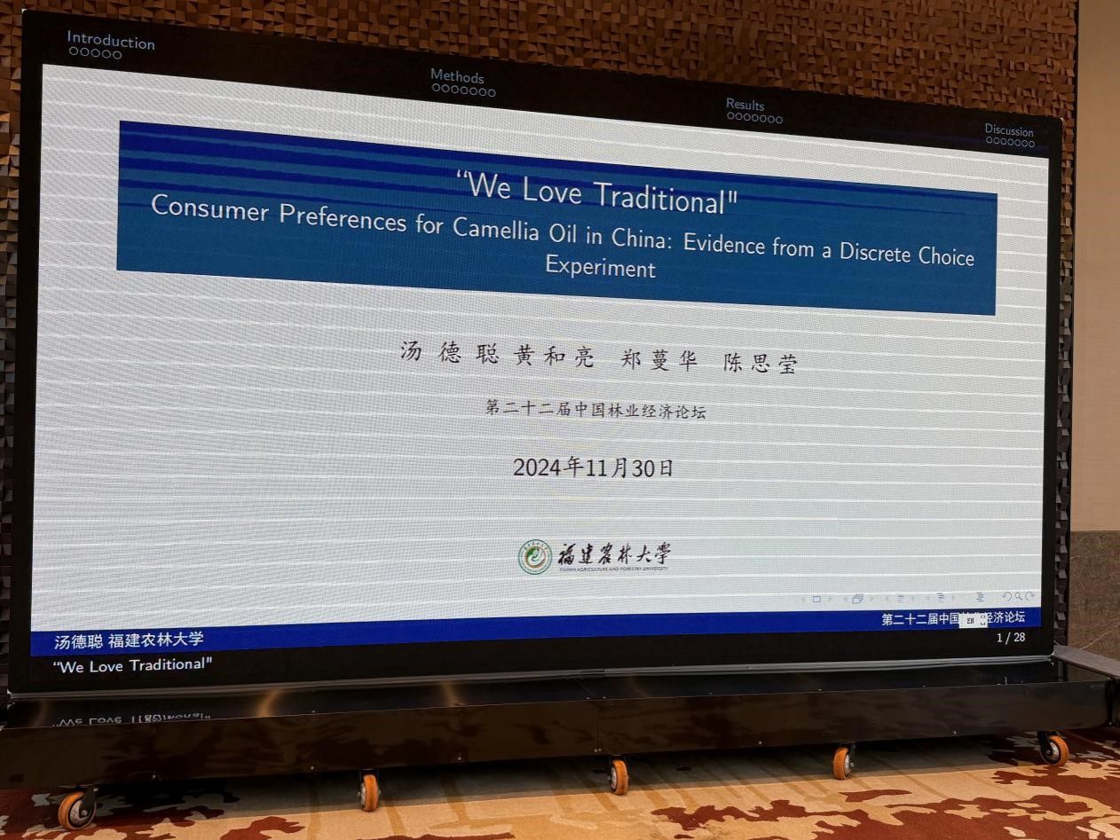 学院市场营销专业教师郑蔓华参与撰写的论文《“We Love Traditional” Consumer Preferences for Camellia Oil in China: Evidence from a Discrete Choice Experiment》在平行论坛八“其他林业经济研究及学科发展前沿与热点问题”进行论文报告,该论文同时入选论坛论文集。