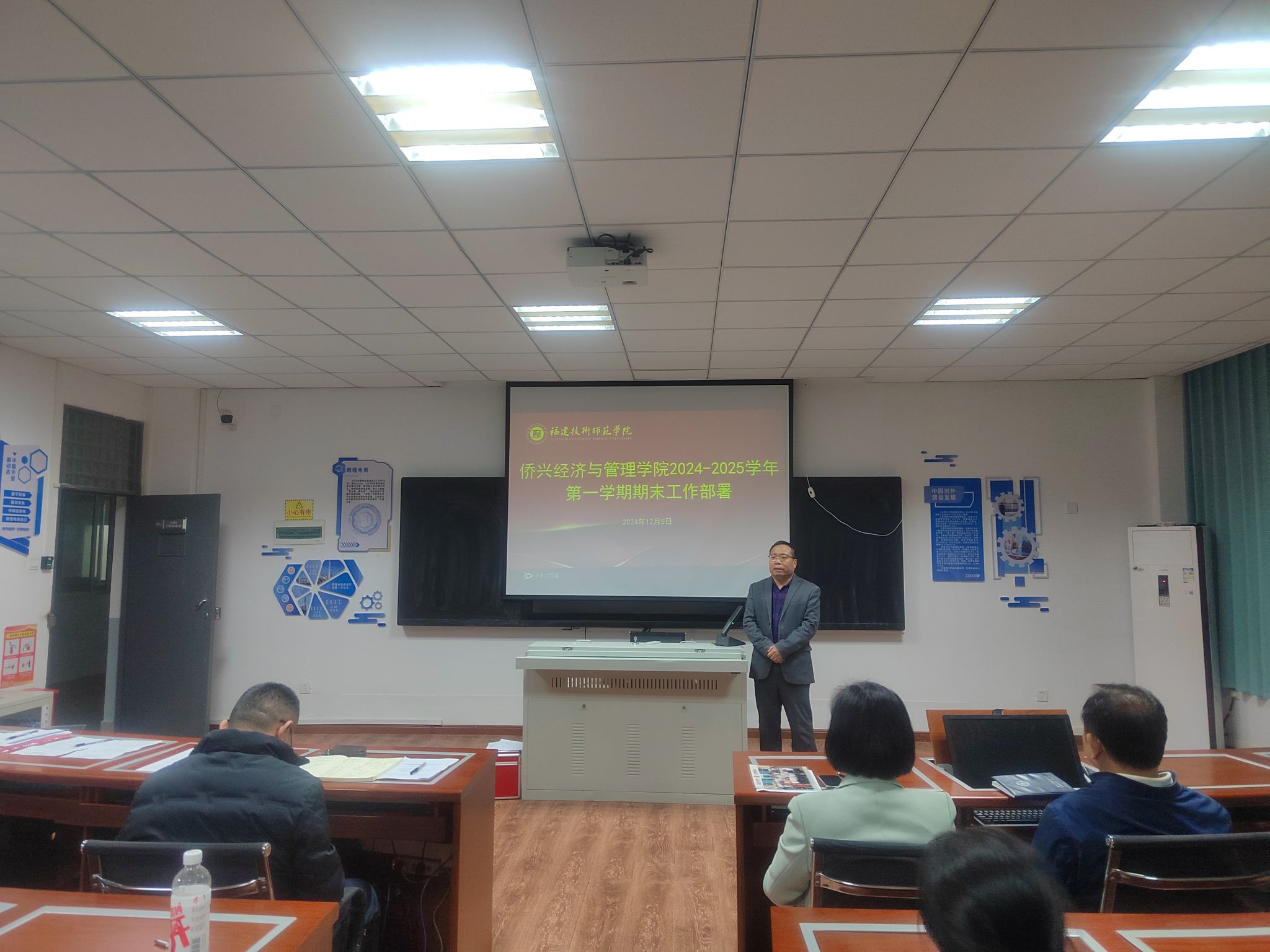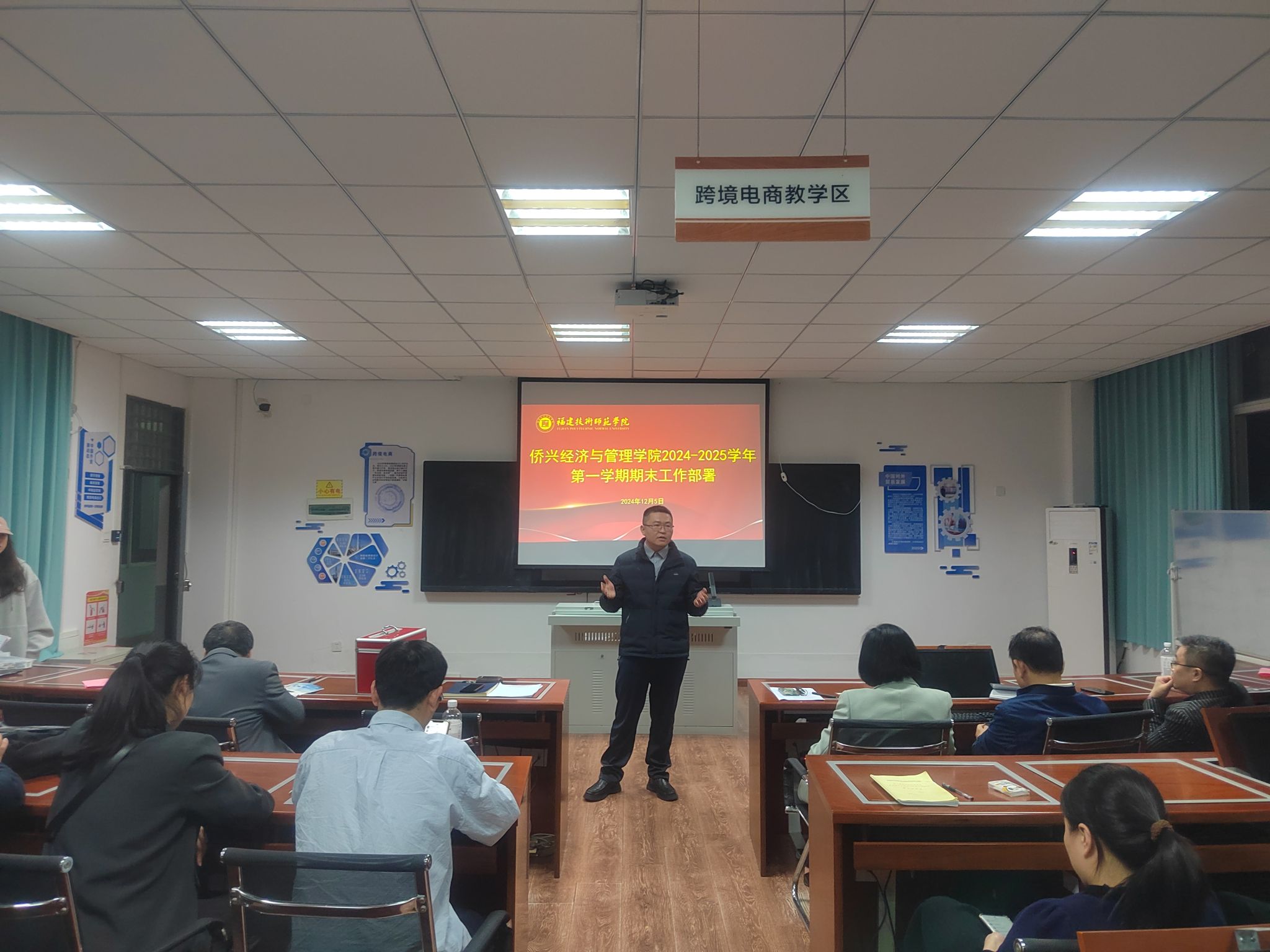 学院党委副书记(主持工作)林伟,就校党委关于落实《省委贯彻党的二十届三中全会精神,进一步全面深化改革,奋力推进中国式现代化福建实践的决定》的若干举措,组织开展了学习。他强调,对于学校事业发展来说,改革是推动学校事业发展的关键一招。只有坚持改革,才能为学校事业发展行稳致远提供充足动力。全院教职工要认真学习党的二十届三中全会精神,在学深悟透上下功夫,持续提高政治站位。就期末工作,他强调,要认真做好期末复盘,狠抓考试诚信,从源头上降低考试作弊的可能,确保学院期末各项工作平稳有序、顺利收官。