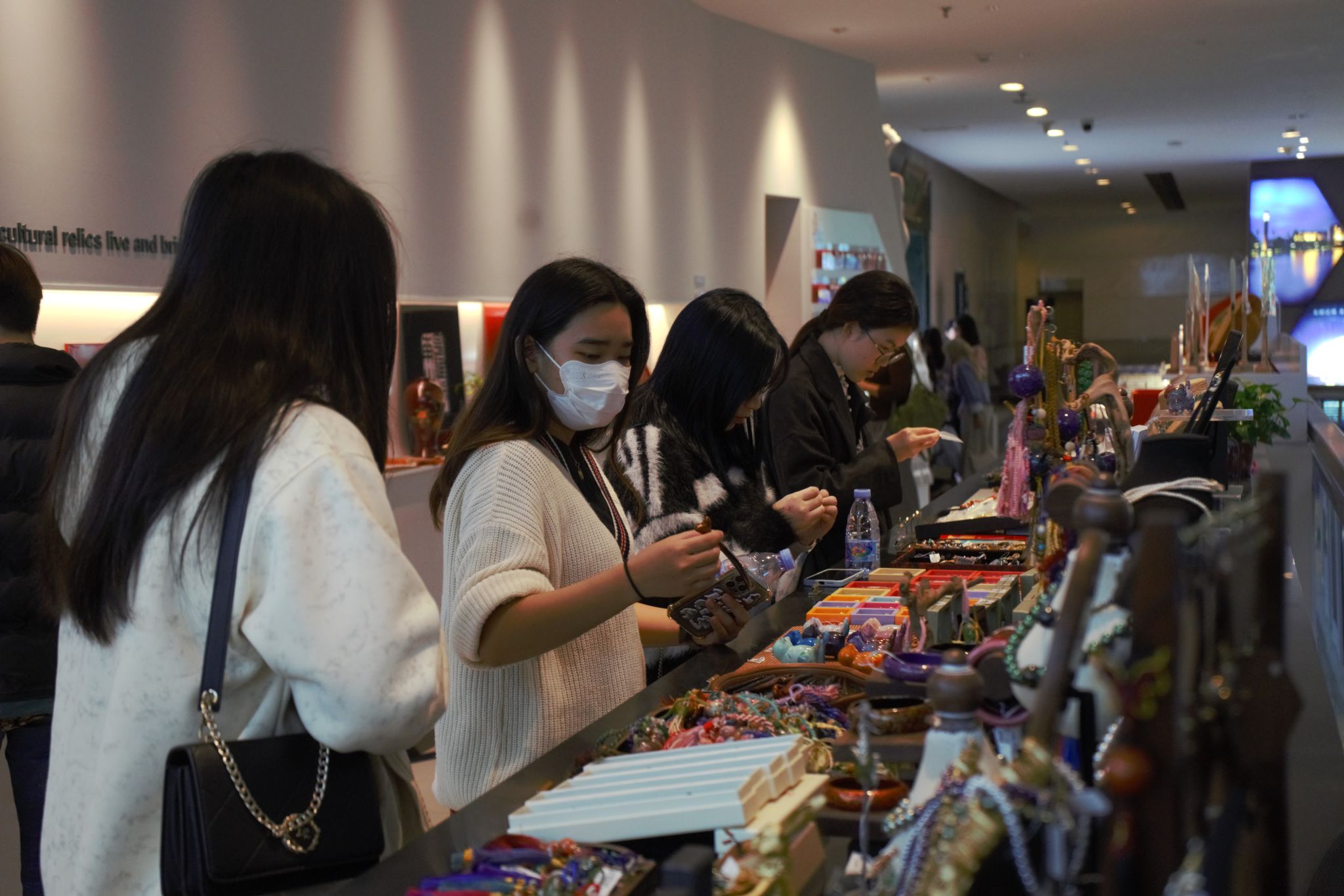 来到福建省博物馆,在讲解员带领、讲解下,学院海外留学生或独自观看、或结伴参观,在各个展厅探访以前只在书本、课堂上看过听过的中华五千年历史,领略中华文化独特魅力,进一步加深了他们对中华文化的理解与感悟。研学后,海外留学生还饶有兴趣地购买文创纪念品。