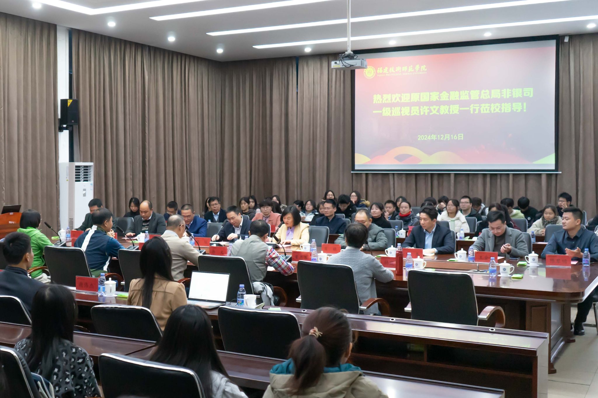 12月16日,国家金融监管总局非银司原一级巡视员许文教授、中国人民银行货币金银局原副巡视员刘艳武教授、北京世纪畅想科技发展有限公司董事长董志军等一行莅临学院指导。中国银行福清分行、民生银行福清支行、金信期货福建分公司、佛山金控期货福清营业部、东北证券福清营业部、山西证券福清营业部等地方金融企业负责人一同到校就金融人才培养问诊把脉。