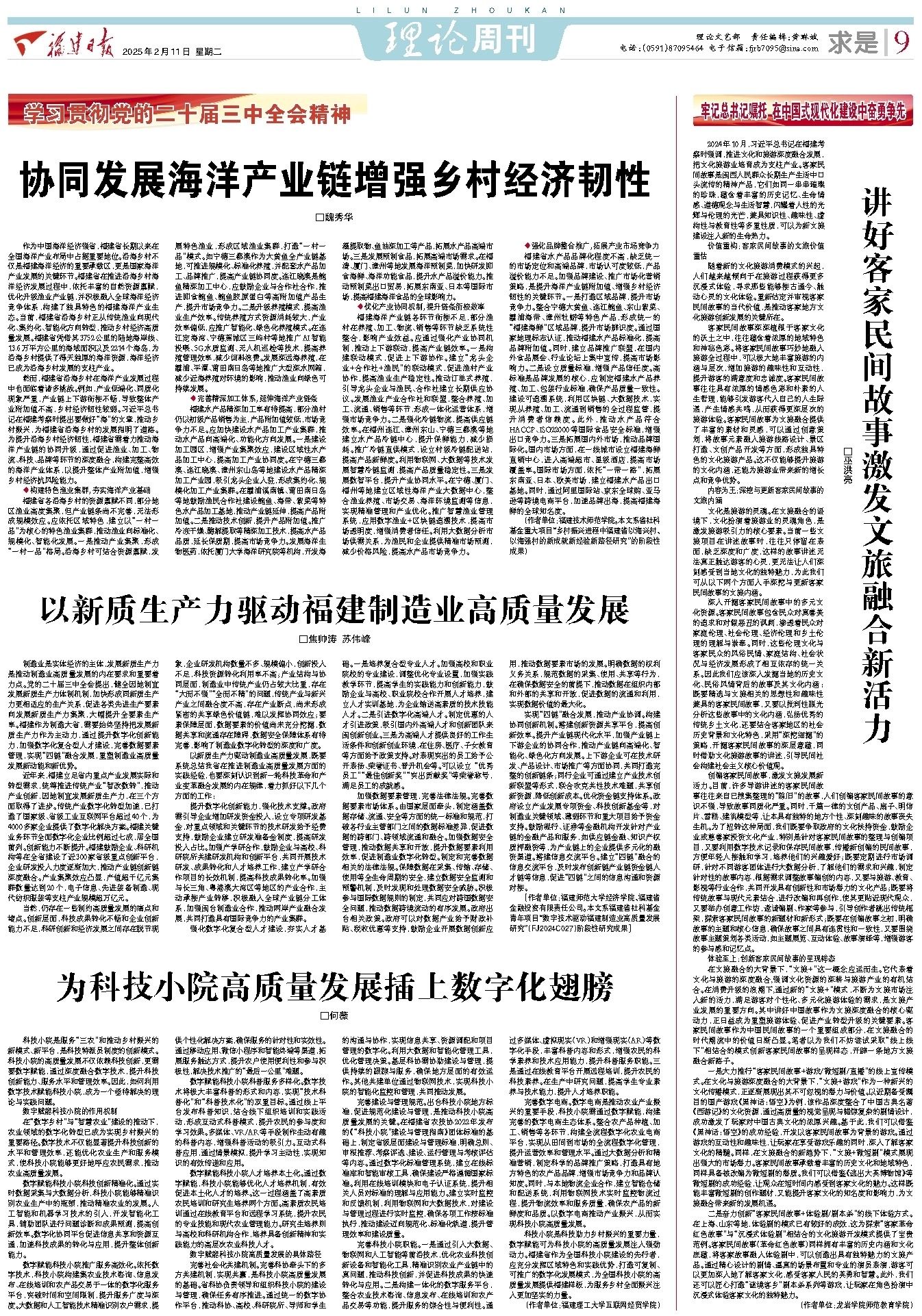 2月11日,《福建日报》理论周刊求是版刊发学院副院长(主持工作)魏秀华教授理论文章《协同发展海洋产业链增强乡村经济韧性》。文章全文如下: