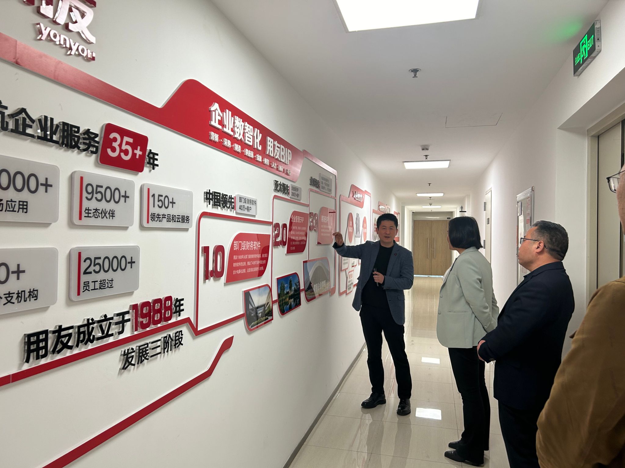 在走访过程中,学院副院长(主持工作)魏秀华向企业介绍了学院事业发展以及人才培养近况,并围绕学院专业建设、人才培养方案制定、学生实习就业等方面工作同企业负责人进行了深入交流,达成了合作意向,并在用友网络科技股份有限公司福州分公司挂牌“实践教学基地”。