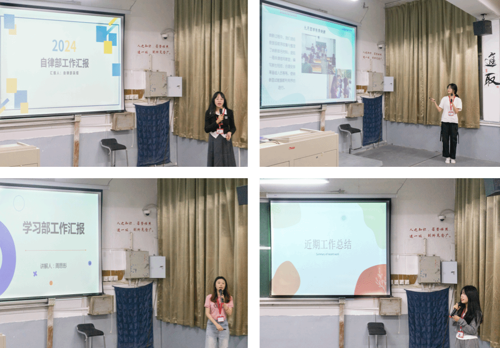 围绕着部门工作职责,团学各工作部门负责人逐一上台汇报了9月份的工作及下一阶段工作计划。