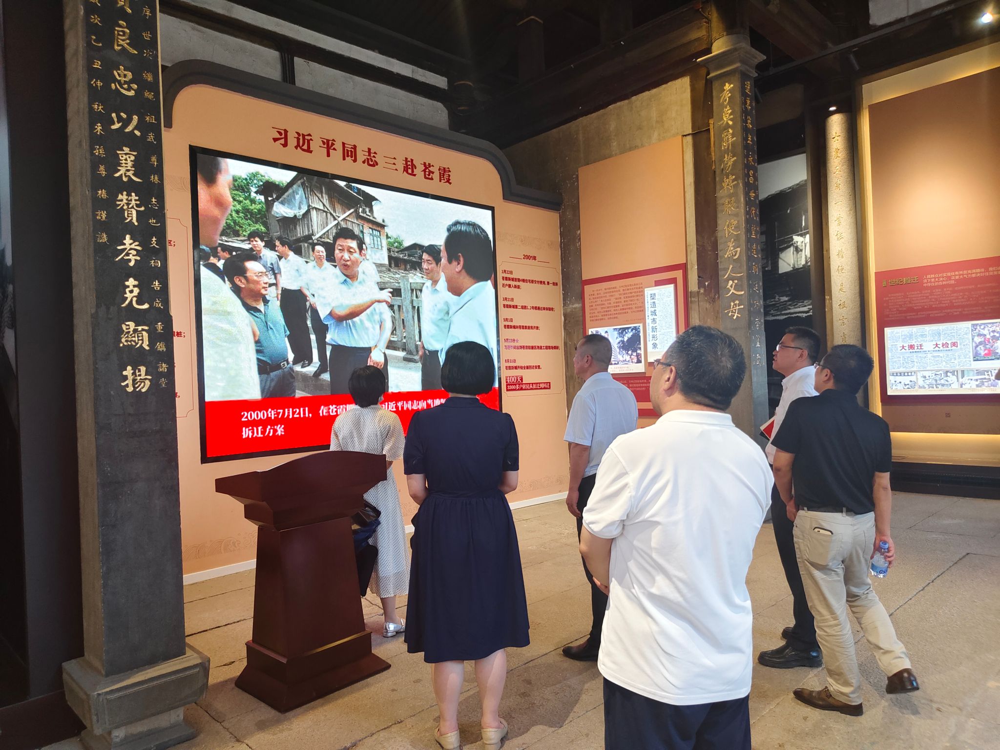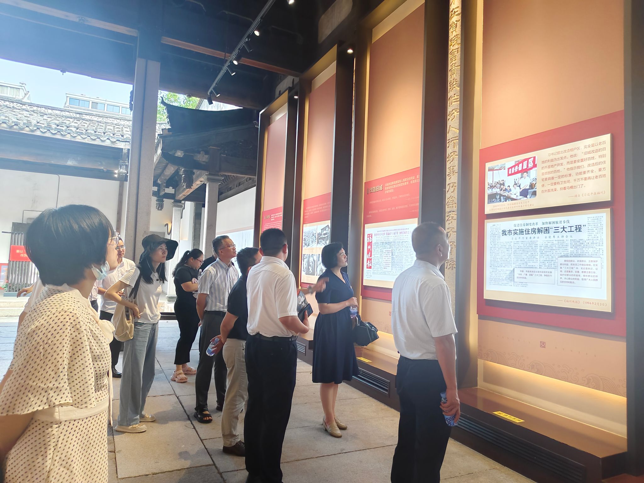 在“苍霞人家”生活馆门前广场上,党员干部们认真学习了时任福建省省长习近平同志对群众作出的“请给群众捎个话,政府会把好事办好”的郑重承诺。在生活馆内,通过“纸裱苍霞”“改造旧城”“喜迁新区”等反映城市变迁的7个主题版块展示,大家重温了习近平总书记冒着酷暑入户走访调研、用心用情用力推动苍霞棚屋区改造的感人故事,真切感受到苍霞片区的巨大变化,深刻感悟习近平总书记以人民为中心的发展思想、“人民至上”的为民情怀、城市建设的创新理念和生动实践。