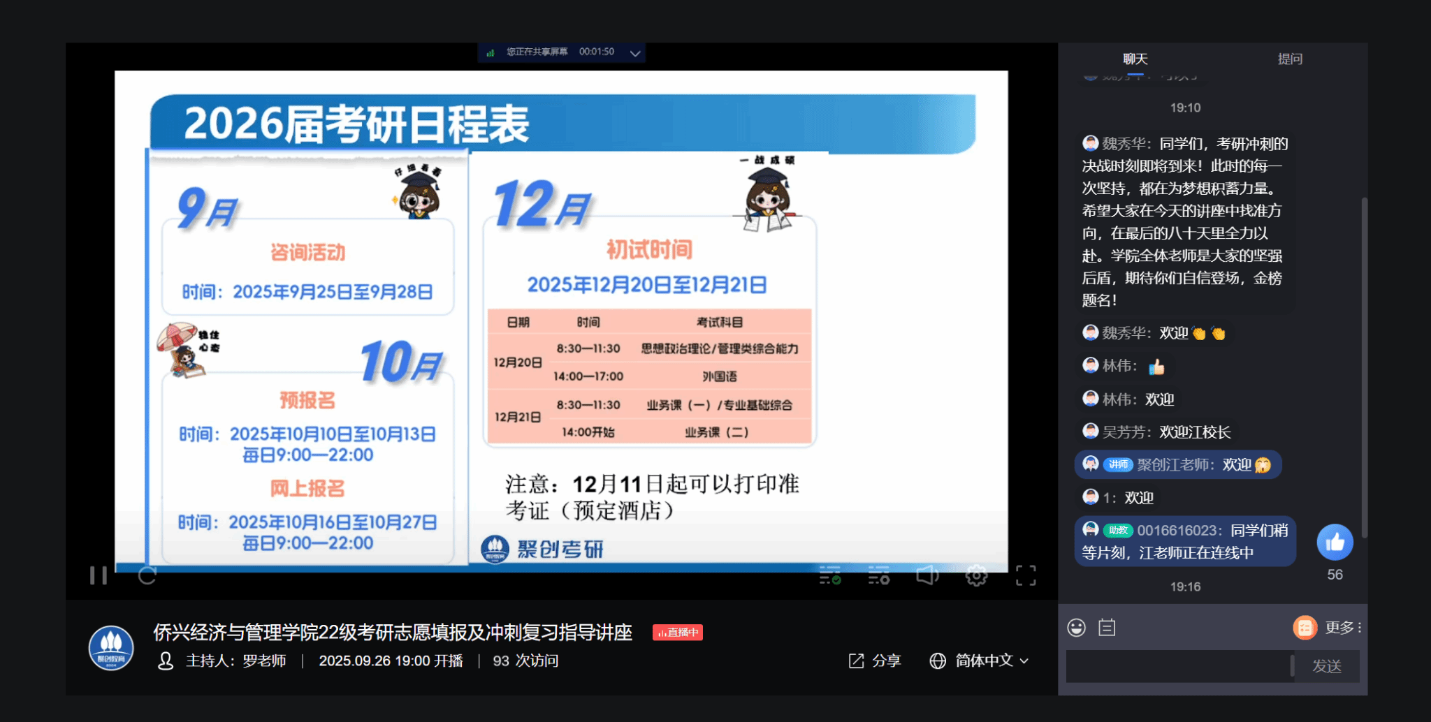 本次讲座精准聚焦当前研考关键节点。受邀考研辅导专家,围绕着网报环节前期准备、填写流程及易错点、志愿填报以及冲刺阶段调整方法与复习策略,进行了耐心细致的讲解。