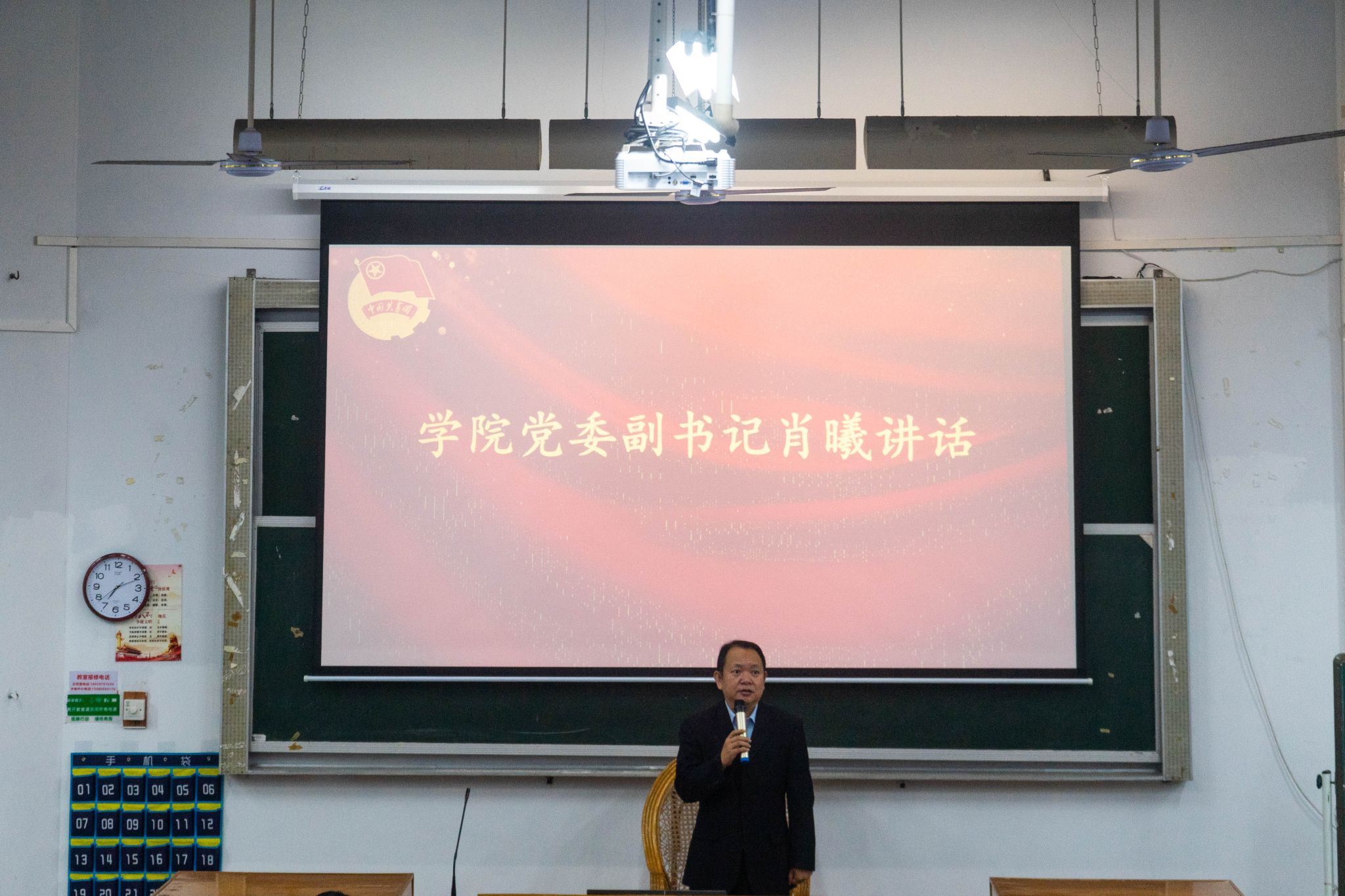 肖曦副书记作了讲话。他指出,团是党的助手和后备军,入团是青年向党组织靠拢的重要途径。全院团员要牢记团员身份,严格遵守团的章程,履行团员义务,立足学科专业特色,在学习科研中当先锋、在社会实践中做闯将,在青春的赛道上奋力奔跑。