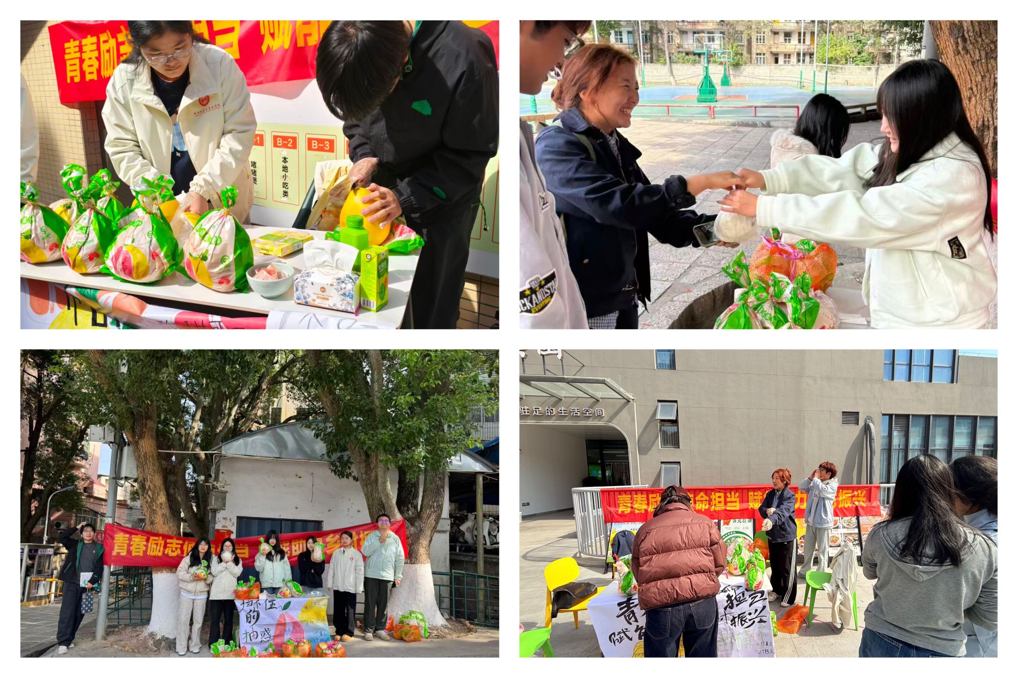 此外,同学们还在校内求真食堂、向高食堂以及校外半坡区域开设助农营销摊位,将刚从基地运抵的新鲜蜜柚带入校园。同学们设计了“挡不住的柚惑”“‘柚’福了”等趣味主题摊位,搭配手绘海报、试吃体验等形式,亲身体验具体营销活动。
