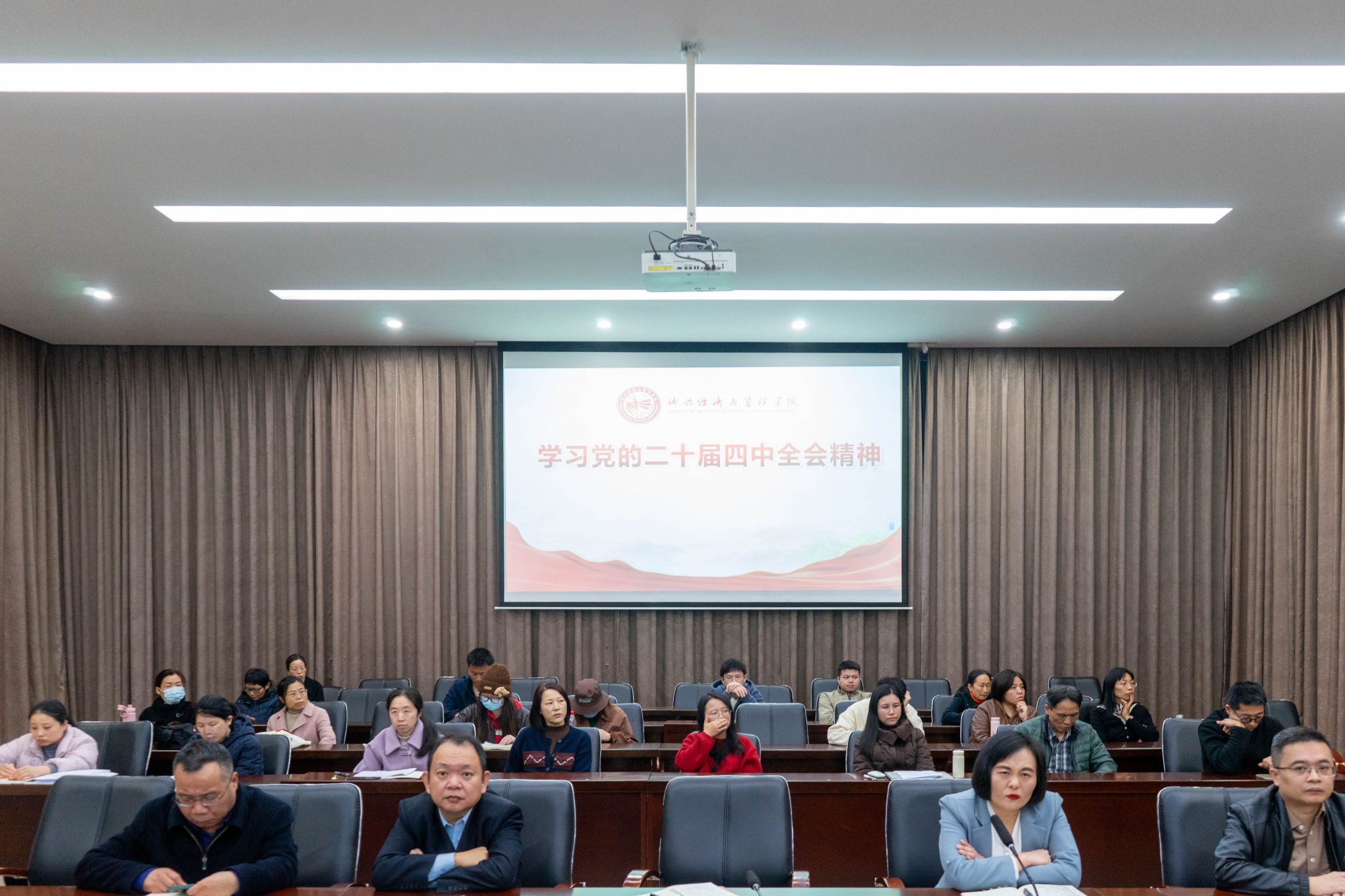 12月30日下午,我院在华贞学术报告厅召开期末工作会议。全体教职工参加了会议。学院党政领导依次进行了发言。