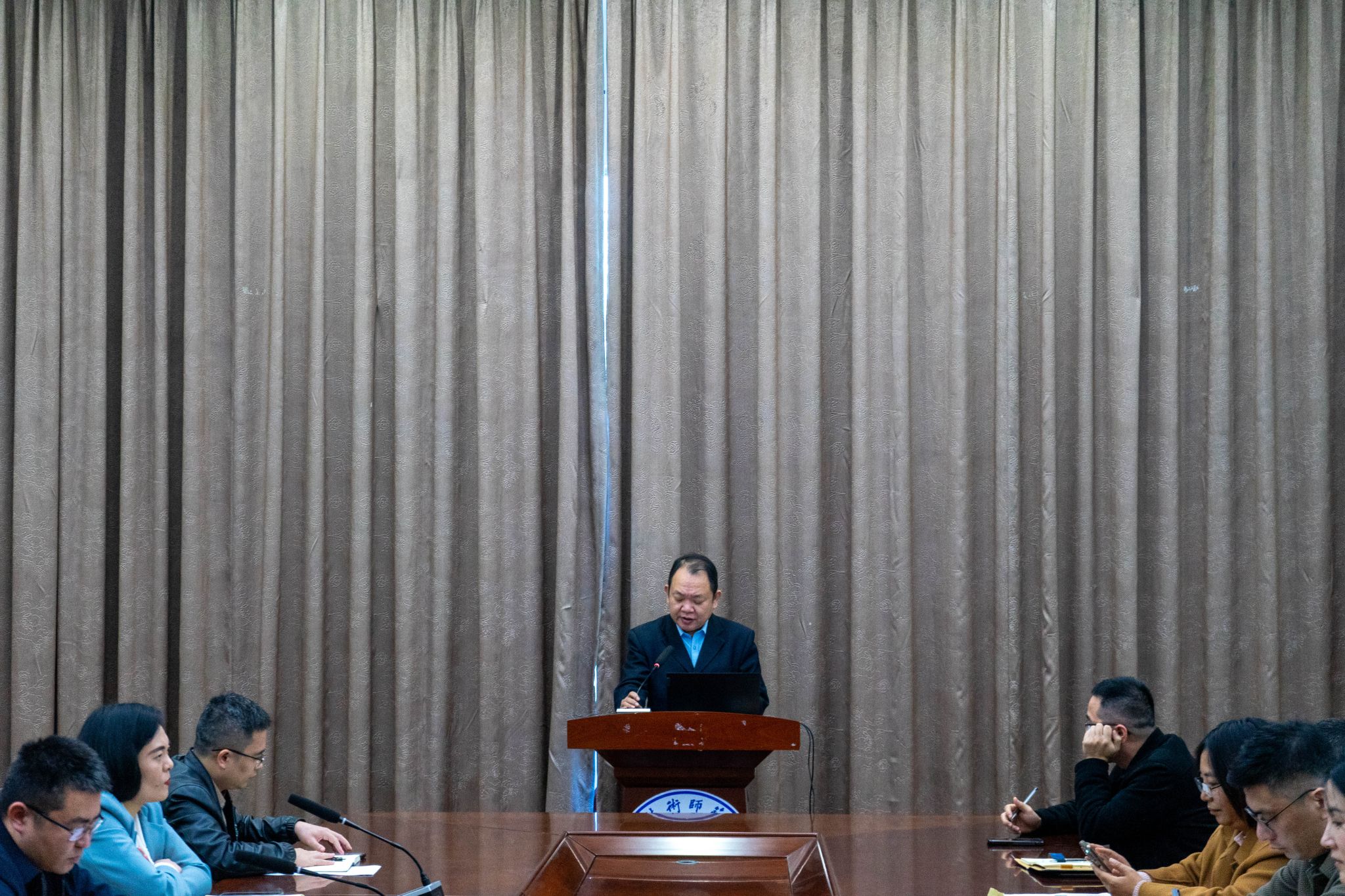 首先,分管教学工作赵东喜副院长围绕教学工作作期末工作布置。他总结了学期教学工作有关成效,在此基础上,他指出,期末要进一步严肃考风考纪,防范作弊行为,维护考试公平公正。要严肃课堂教学纪律,做好教学材料归档整理,强化教学过程性管理。要利用寒假,积极备课,打好“质量攻坚战”。