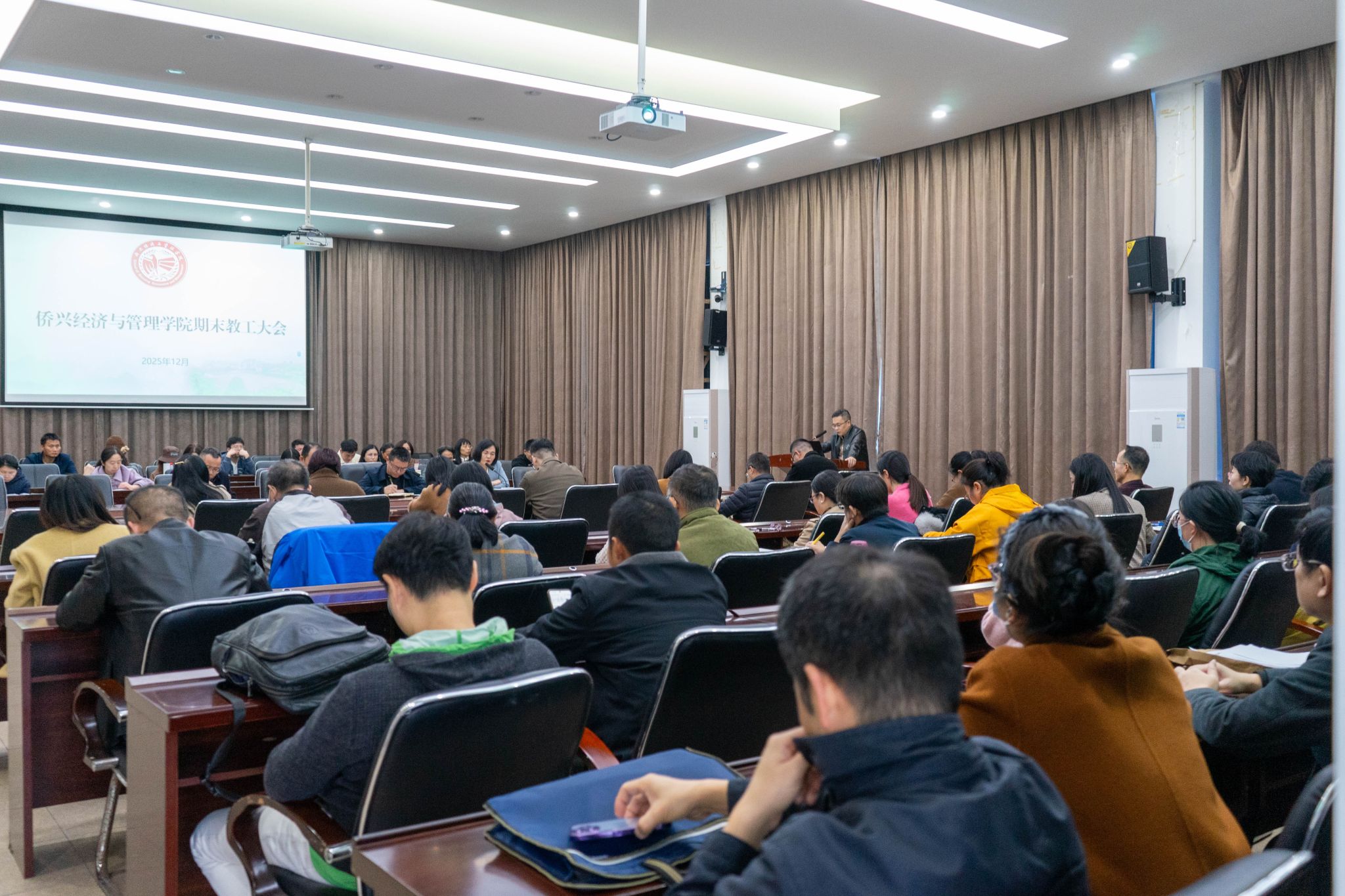 学院党委副书记、纪委书记肖曦强调了党风廉政建设以及就业工作。他强调,全体教师要严守纪律规矩,做到务实过节、廉洁过节、安心过节、文明过节。针对毕业生就业这一“检验办学成效的重要标尺”,他着重指出:就业是民生工程,更是学院责任,需构建“全员促就业”格局,引导毕业生树立“先就业再择业”理性观念,通过精准推送岗位信息、开展个性化辅导等方式,全力提升大学生就业工作。