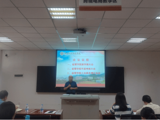2023年8月27日下午3点,我院在科学楼403电商实验室召开新学期教职工大会。学院全体教职员工参加,会议由院党委副书记陈国荣主持。