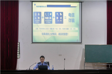 刘大强警官结合大学生社会阅历缺乏、辨别意识薄弱等成长成才特点,分析了当下电信诈骗多样化发展的严峻形势,大学校园已经成为发案重灾区,高校学生成为了受害主要群体之一,明确了防范电信诈骗的必要性。为帮助大家提高电信诈骗辨别能力,刘警官结合高校中高频发生的电信诈骗案例,包括刷单返利诈骗、网络兼职诈骗、购物退款诈骗、冒充熟人诈骗、消费贷款诈骗等等,介绍了学生诈骗案件形式、手段和防范办法。案例真实鲜明,内容生动活泼,引起了同学们的强烈共鸣,积极参加现场互动。