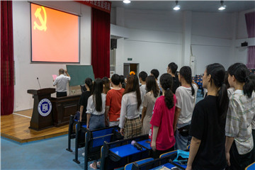 最后,面对鲜红党旗,全体毕业班学生党员紧握右拳,举起右臂,在陈国荣书记的带领下庄严宣誓,重温入党誓词。铿锵的誓词神圣而豪迈,体现了党员同志们服务人民和国家,为党的事业奋斗终身的决心和愿望。