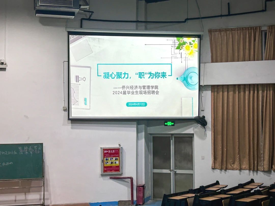 为进一步落实高校毕业生就业工作,持续提升就业工作质量和水平,坚持把就业作为最大的民生工程抓紧抓实,4月12日下午,我院面向全体2024届毕业生于向高园报告厅(二)举行现场招聘会。此次招聘会共邀请了福清市内五个企业入校宣讲。学院党委书记杨建辉教授、党委副书记肖曦、国际经济与贸易专业主任赵桂燕老师以及全体毕业生出席本次会议。