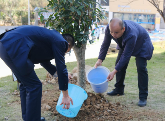 “沾衣欲湿杏花雨,吹面不寒杨柳风。”阳春三月,春风涌动,春暖花开,正是植树护绿的好时节。在这美好时节里,我院教工第一党支部全体党员于3月10日在向高园学生宿舍区开展了义务植树“春日植树添新绿,党旗辉映别样红”主题党日活动。