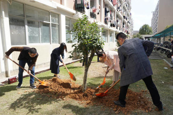 活动中,在向高园学生宿舍区3#与4#之间、5#半夏咖啡厅前空地上,大家干劲十足地种下了桂花树苗。有的挖坑、有的埋土、有的浇水,大家你追我赶、比干劲、比进度,各个环节衔接有序,样样做得认真到位,个个忙得满头大汗,到处都是忙碌的身影和劳动的欢声笑语。