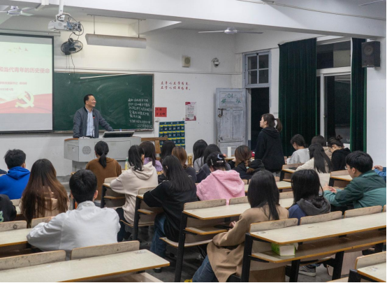 4月25日晚,我院邀请教育学院党委副书记郑向峰老师在教学楼304为我院2023年上半年入党积极分子培训班全体学员上了一堂题为《党的二十大和当代青年的历史使命》的主题党课。此次主题党课围绕深入学习贯彻党的二十大精神以及党的二十大对当代中国青年的指导作用展开论述。
