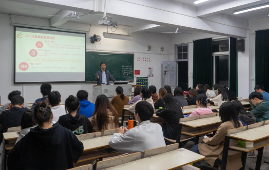 接着,郑向峰老师从党的二十大基本概况、重点内容以及新时代青年的所作所为三个部分进行阐述。他先从党的二十大报告的起草过程、选举过程、历史地位和重要意义几个方面概括了党的二十大基本情况,随后讲解了党的二十大报告的重点内容,讲述了党的二十大的主题,将党的二十大的三步走与党的十九大的三步走进行比较,由此来论证加强党的全面领导的重大战略意义。