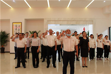 在宣誓厅的党旗下,全体党员在学院党委陈国荣书记的领誓下重温入党誓词,以坚定有力的宣誓,表达不忘初心、砥砺前行的信念和决心。