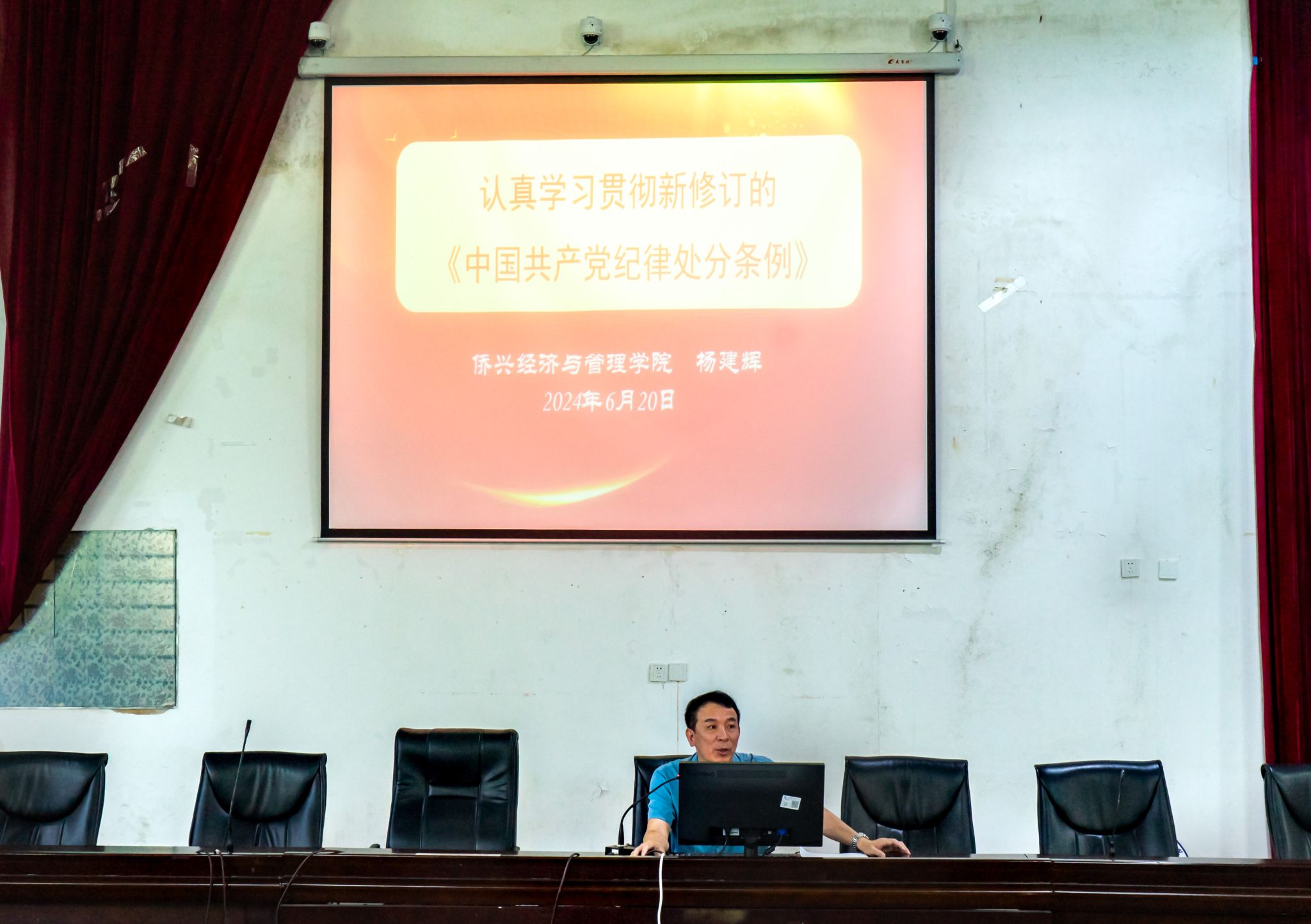 杨建辉书记为全体毕业生党员讲了一堂生动的党课。他对新修订的《中国共产党纪律处分条例》进行了详细讲解,分析了《条例》修订和颁布的四个重要意义,引导大家深刻领悟“两个确立”的决定性意义,做到“两个维护”,进一步加深了党员们对《条例》的认识。课上,杨书记向全体毕业生党员提出三点要求:一是要全面深入学习《条例》;二是要全面加强党纪教育,增强遵规守纪的自觉性;三是强化政治意识、规矩意识、底线意识,自觉树立新时代党员忠诚干净担当的良好形象。他希望通过这次学习,大家能够牢记党员身份,认真贯彻落实《条例》要求,用纪律规范言行,争做一名优秀的共产党员。