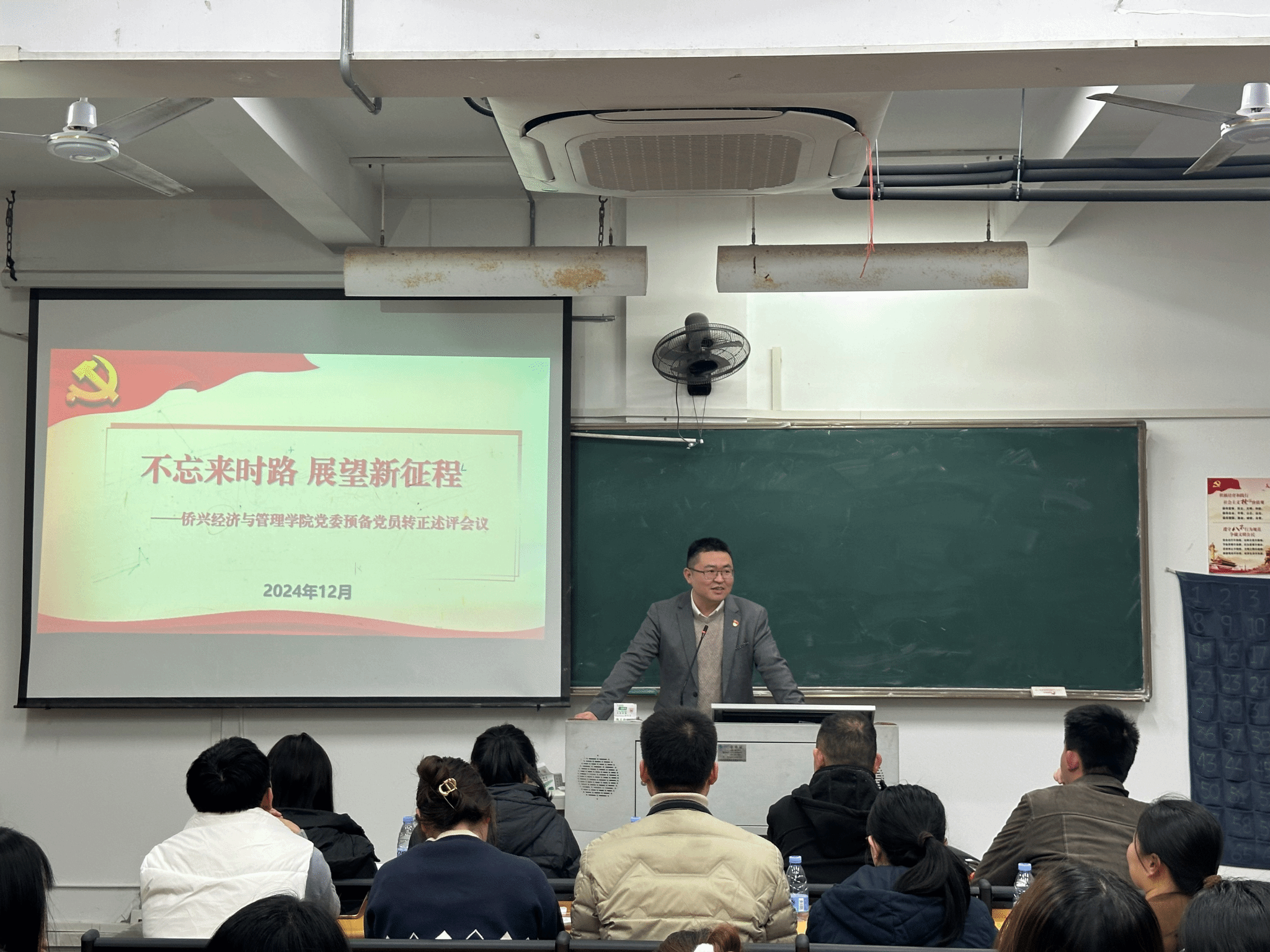 12月10日晚,我院党委以“不忘来时路·展望新征程”为主题在教学楼506开展党员转正前主题教育活动。学院党委副书记(主持工作)林伟、党委副书记肖曦、各学生党支部书记以及在校预备期将满的学生党员出席了此次活动。
