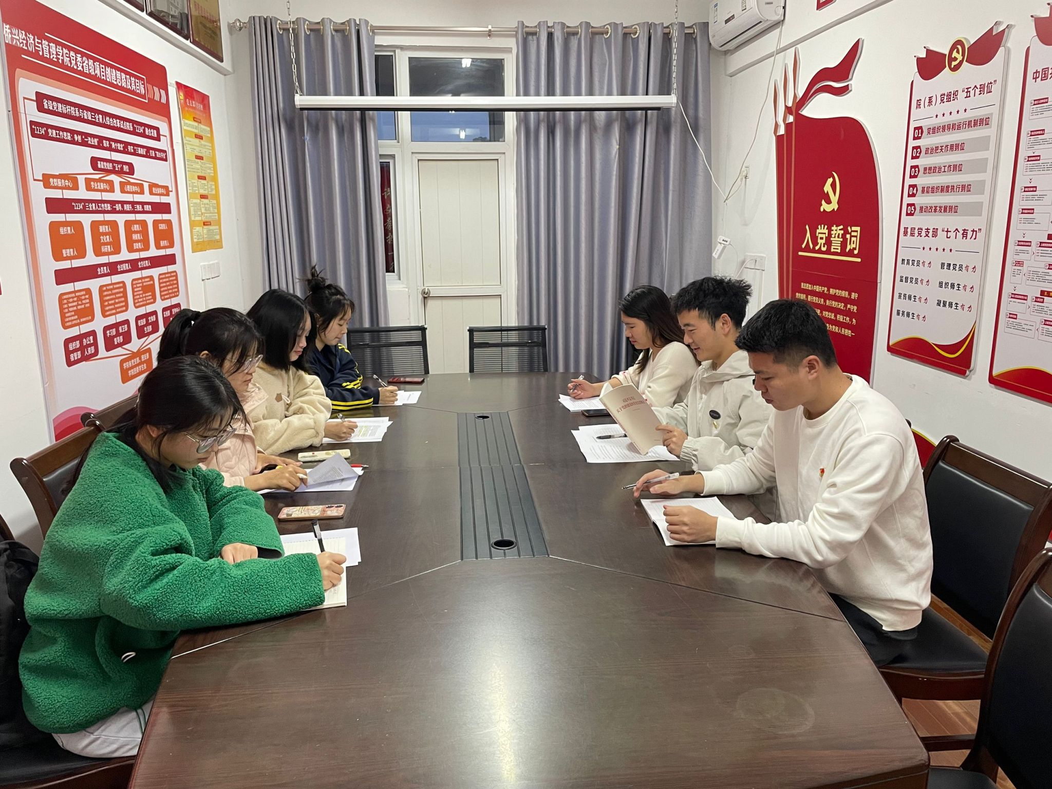 会前,各师生党支部书记组织全体党员学习《习近平总书记关于党的建设的重要思想概论》相关篇目,引导全院师生党员自觉强化理论武装、提高政治站位,持续擦亮坚定拥护“两个确立”、坚决做到“两个维护”的鲜明政治底色。