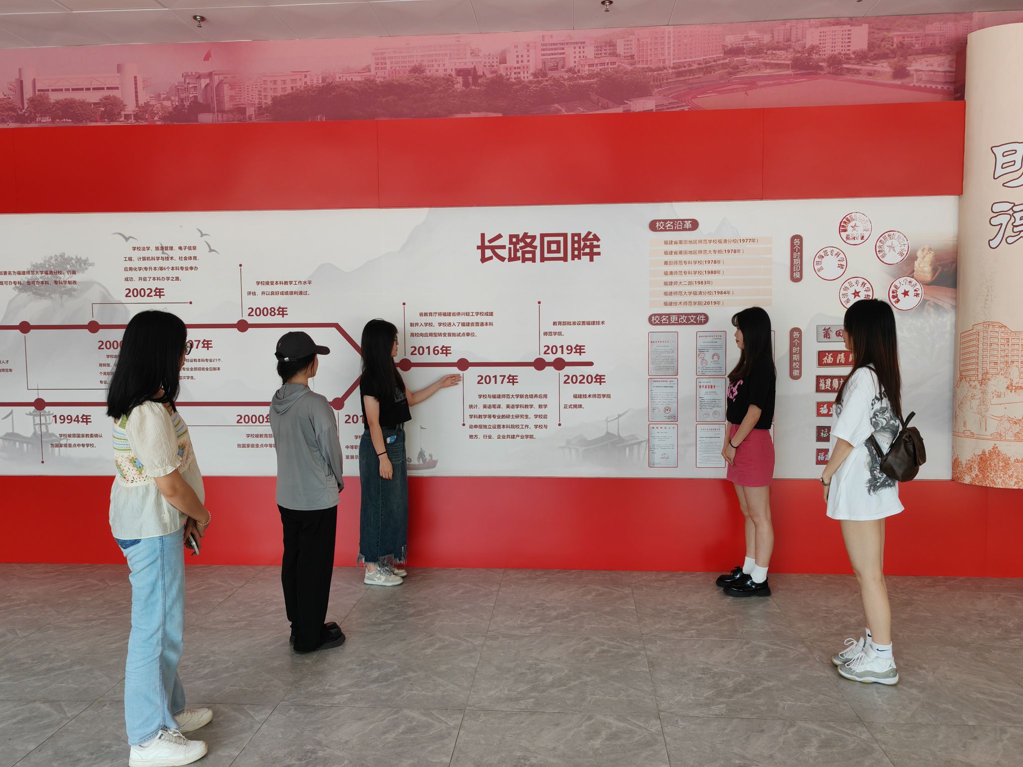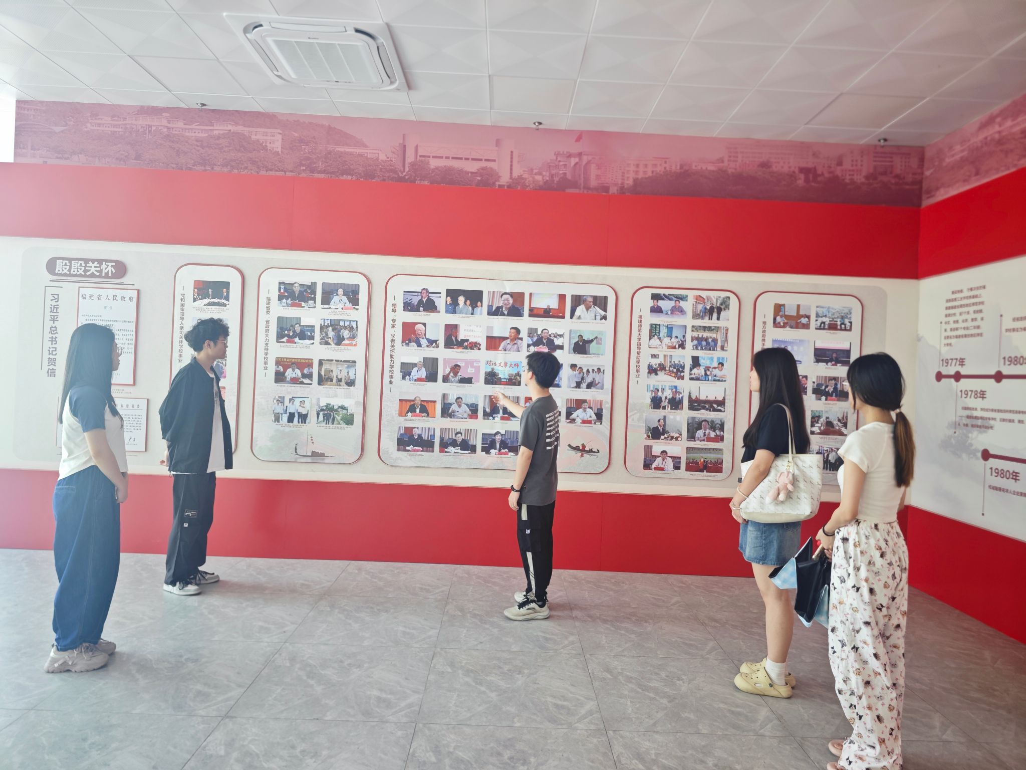 在组织者的引导下,学员们满怀期待地踏入校史馆,开启了一场寻根溯源之旅。同学们通过俯瞰图直观感受到五马山校区和石竹山校区的宏大规模。在“情系桑梓”展区,他们详细了解了余昌檀、陈子兴、林联兴等杰出校友在学校发展历程中作出的巨大贡献。鎏金岁月,春风化雨,广大杰出校友慷慨解囊捐资助学的事迹让同学们深受感动,同时也在他们心中种下一颗回报母校的种子。沿着历史的脉络,学员们全面了解了学校四十余载的办学历程,不禁心潮澎湃。