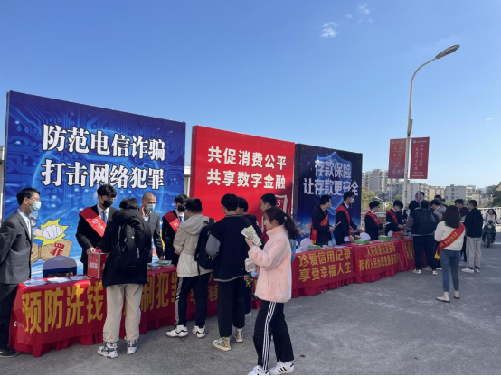 活动通过趣味知识问答、游戏抽奖等形式向广大师生积极宣传打击治理电信网络诈骗、反假货币、打击不良代理投诉、依法理性维权、预防洗钱、珍爱信用记录等方面的内容,倡导理性消费观念,培育良好金融消费生态环境,让人民群众更加平等、便捷地享有金融基础服务。
