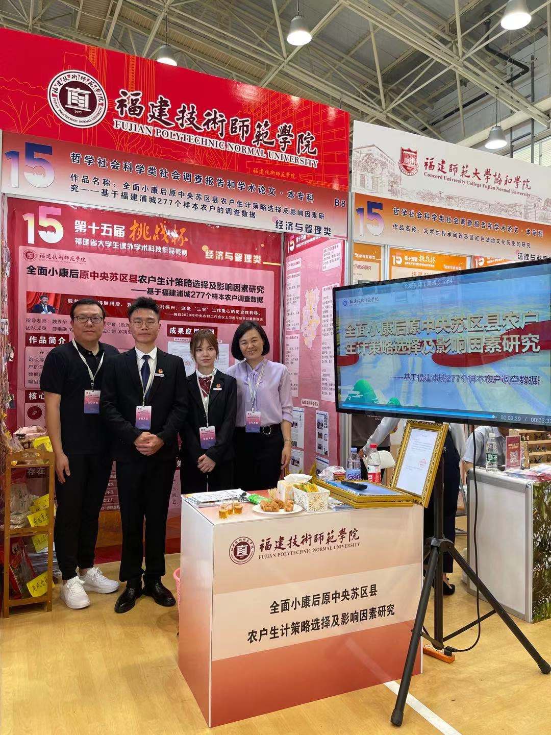 5月9日,由团省委、省科学技术协会、省教育厅、省社会科学院、省学生联合会主办的第十五届“挑战杯”福建省大学生课外学术科技作品竞赛终审决赛在厦门大学嘉庚学院圆满落幕。我院学生团队作品进入终审决赛答辩的项目取得佳绩,获哲学社会科学组一等奖。