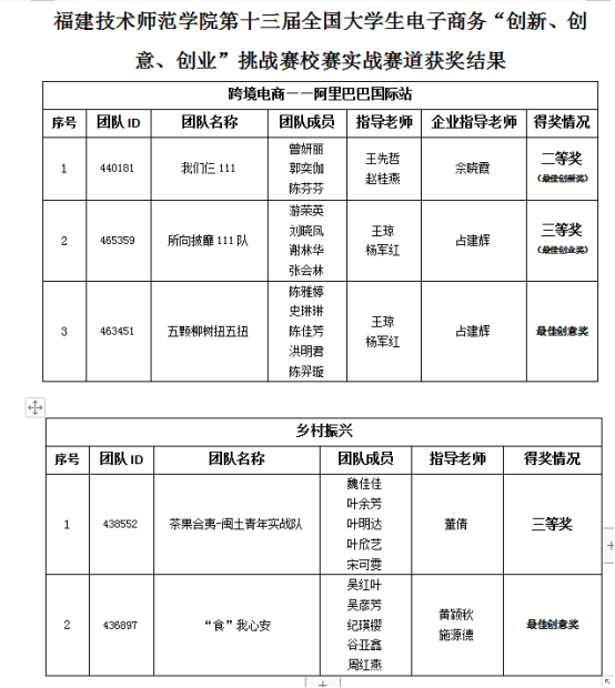 本次校赛共有来自全校各学院的110支队伍报名,参赛队伍及人数创历史新高,团队项目涉及贸易、农业、科技、服务等行业。校赛经过初审、小组赛和终极赛,共选出传统赛道特等奖一名,一等奖三名,二等奖六名,三等奖六名;实战赛道跨境电商二等奖一名,三等奖一名,乡村振兴三等奖一名。