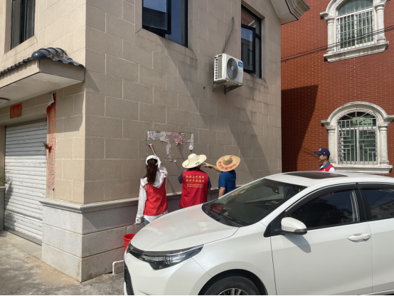 为配合福清文明城市创建工作,实践队成员与新楼村村“两委”共同携手开展文明创城志愿服务活动。同学们身着红色志愿服到村里给村民发放文明宣传手册,对电线杆上乱贴的小广告进行全覆盖式的清理,对绿地内的杂草、杂物进行集中清理。