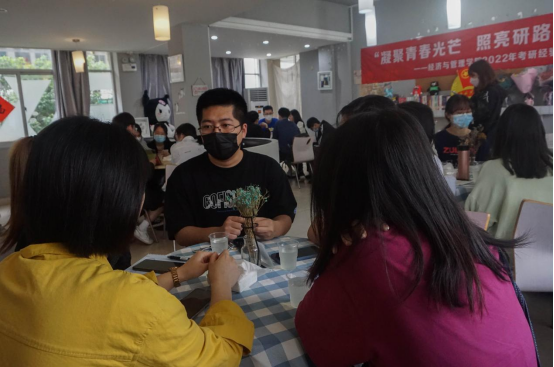 为了进一步加强同学们对研究生入学考试的认识,提高学生的考研热情,增强学生考研信心,明确考研目标,掌握相关考研技巧。我院于4月27日下午在半夏咖啡厅举办“凝聚青春光芒,照亮研路远方”2022年考研经验交流会。院党委副书记陈宇育老师、2018级毕业班辅导员王凌雪老师、2019级辅导员陈智锟、张静瑶老师、2020级辅导员蔡紫峰老师、2021级辅导员马万凯、杨丹老师以及部分2023届毕业生出席本次活动。