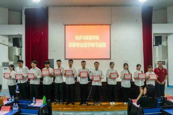 紧接着,院党委副书记陈宇育老师为即将转入海洋学院的旅游管理与服务教育专业现任院团学干部颁发聘书,并希望他们能够在新的学院继续发光发热,锤炼本领。
